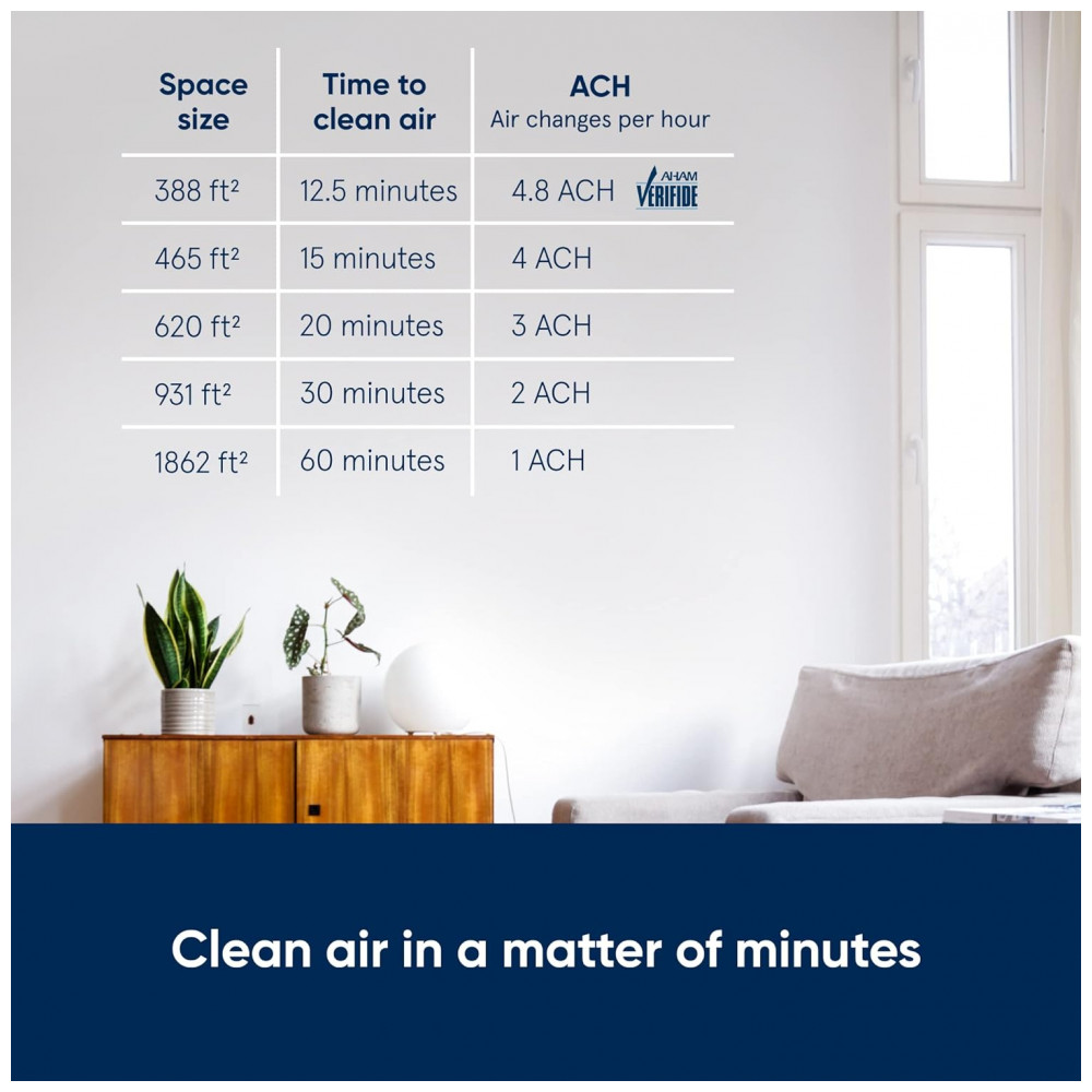 Recomendado para quartos médios, filtra completamente o ar no quarto principal, na sala de estar ou na sala de jogos a cada 12,5 minutos 4,8x por hora a 388 pés quadrados no alto R…