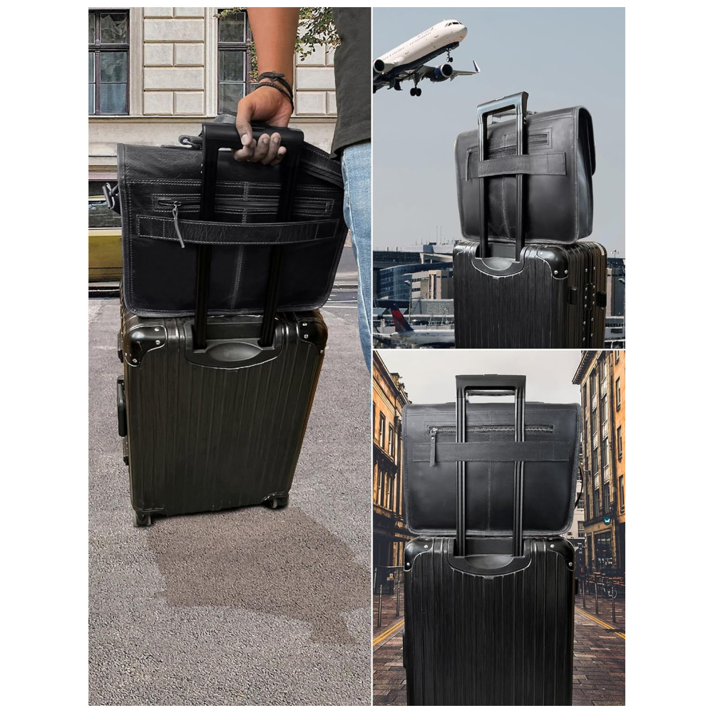 Ajustes para Conforto Para aquelas longas viagens, a alça de ombro desta bolsa de couro para laptop é totalmente ajustável e removível.