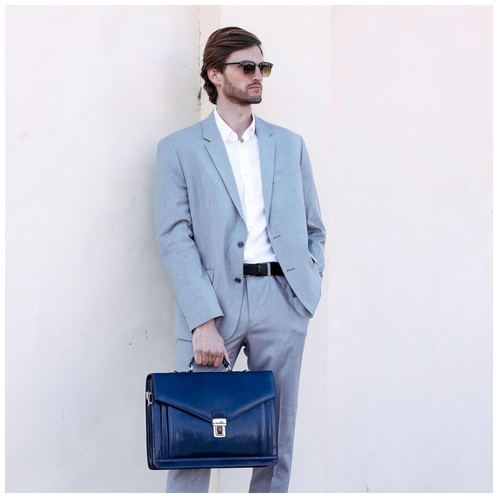Bolsa Carteiro Masculina de Couro Artesanal Italiano para Laptop com 15 Polegadas e Fecho em Zíper, Time Resistance, Azul: BOLSA QUE FAZ UMA DECLARAÇÃO você sabia que tem apenas 7 segundos para causar uma primeira impressão E cada detalhe é importante esta atraente pasta de couro irá ajudá lo a chamar a atenção e receber os ELOGIOS, fazendo você se sentir mais confiante e bonito FEITA PARA DURAR a bolsa de couro é feita à mão na Itália usando segredos de artesanato transmitidos de geração em geração.