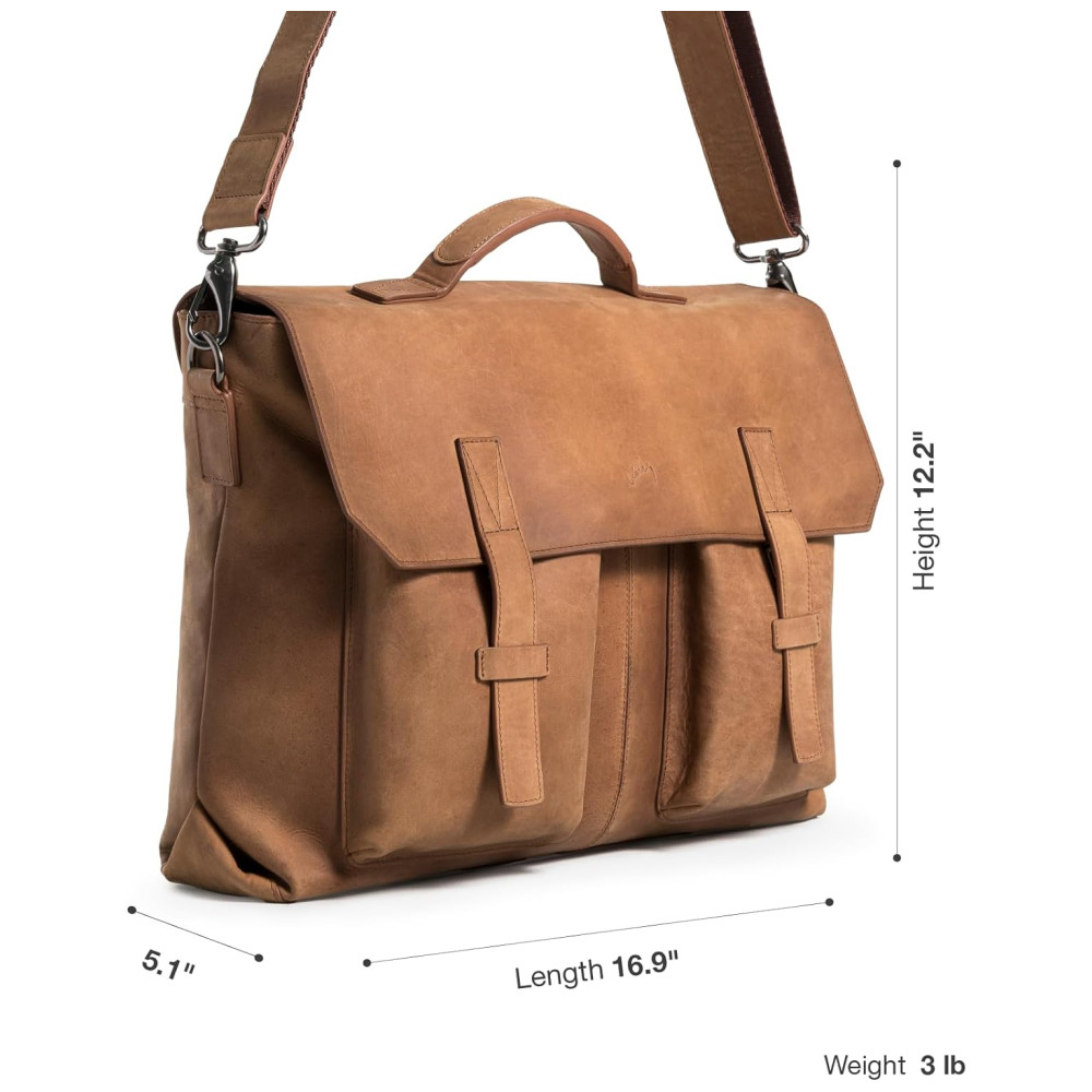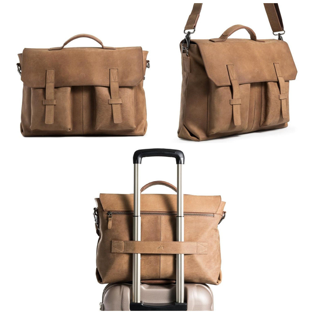 Nossa pasta de couro possui uma capacidade generosa com uma alça ajustável e removível para maior conforto, alça superior e manga para carrinho, 2 frontais bolsos com fecho de clipe de metal, 1 bolso traseiro com zíper, 1 bolso principal com zíper, 1 compartimento interno para laptop de 43 cm, 1 compartimento interno para tablet de 28 cm, 1 bolso interno com zíper e 2 bolsos para garantir que seus itens essenciais estejam organizados.