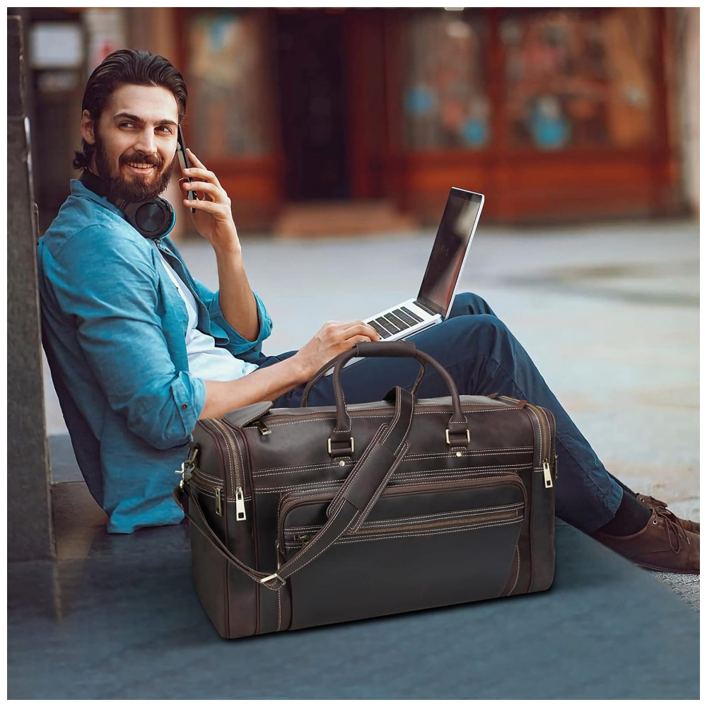 Bolsa de Viagem Masculina Clássica de Couro, C CUERO KJDFG, Marrom