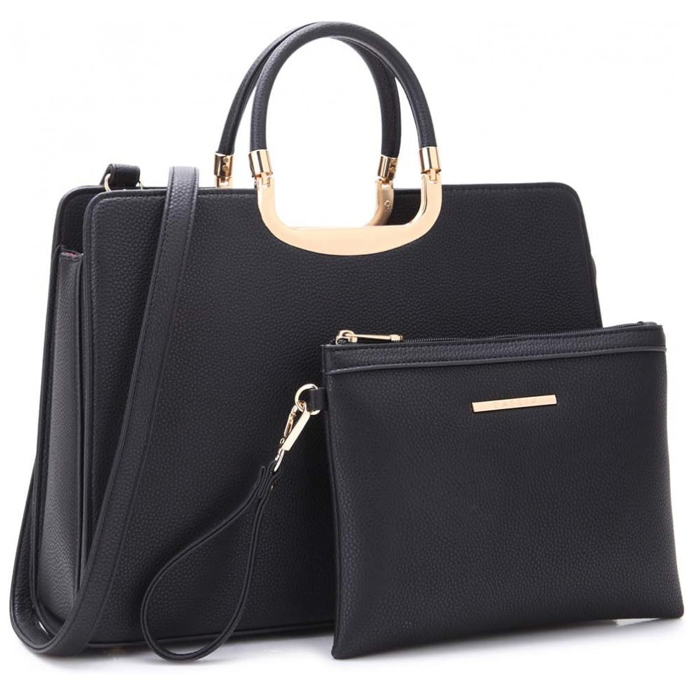Bolsa Feminina de Ombro com Alça Superior e Carteira Combinando, DASEIN XL 19 2828 BK FBA, Preto: MATERIAIS Couro Vegano PU texturizado com pedrinhas e detalhes em tom dourado BOLSOS 1 bolso interno com zíper, 2 bolsos internos deslizantes, 1 bolso central com zíper, vários bolsos para manter seus itens essenciais do dia convenientemente sob controle TAMANHOS 36 x 27 x , queda da alça Alça de ombro removível , tablet adequado, livro, carteira e outros itens essenciais do dia a dia, pulseira 24 x DESIGN Clássico com textura de cascalho, estrutura fina com alças modernas recortadas com dobradiças, fundo plano com tachas, fechamento com zíper, pulseira combinando.