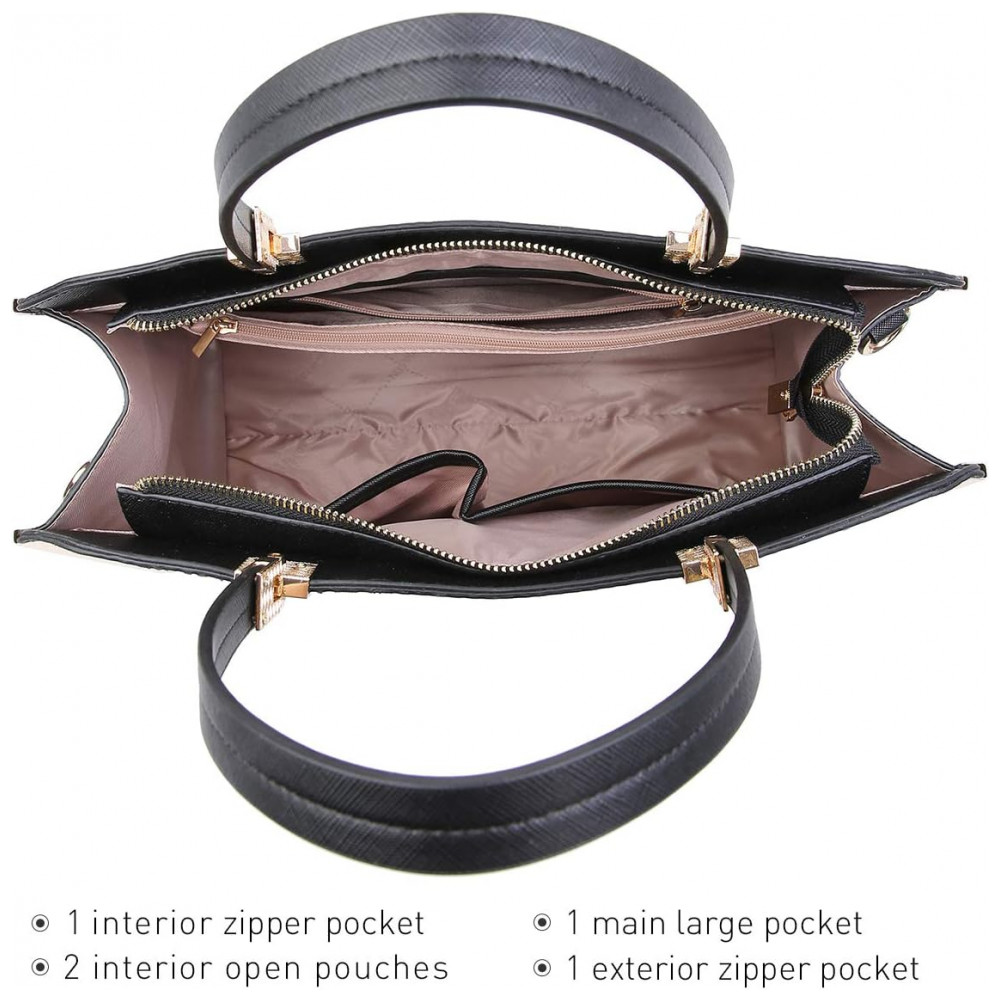 Bolsa Feminina de Ombro com Carteira Florida, 2 Unidades, DASEIN KC XL 12 6900 168 BKF, Preto