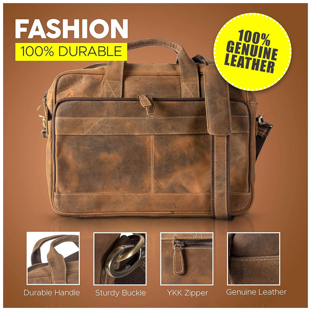 Bolsa, Maleta de Couro Masculina para Laptop, KOMALS PASSION LEATHER BC19542, Marrom: Couro de búfalo de grão integral COURO DE BÚFALO PREMIUM E ZÍPER METAL YKK Ao contrário de outras marcas que usam falso ou PU, as bolsas KPL são feitas de couro de búfalo de água de grão superior premium e são feitas por artesanatos conhecidos.