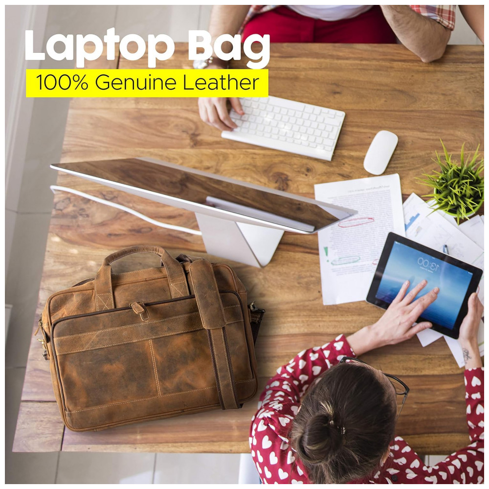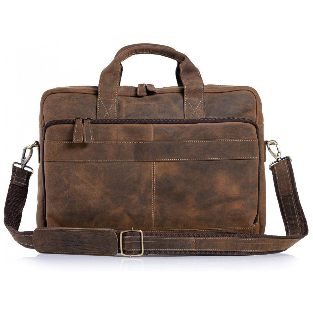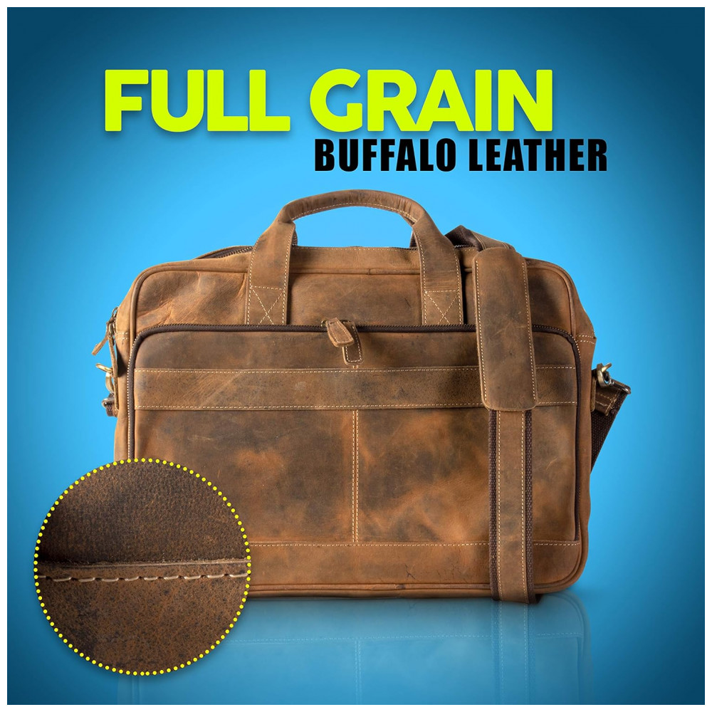 Bolsa Mensageiro de Couro para Laptop Unissex, KOMALC, Marrom: FECHADORES DE COURO DE BÚFALO PREMIUM E DE METAL YKK Ao contrário de outras marcas que usam couro falso ou PU, as bolsas KOMALC são feitas de couro de búfalo de água de grão superior premium e são feitas por artesãos experientes.