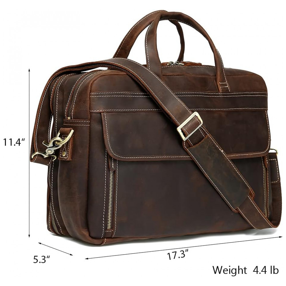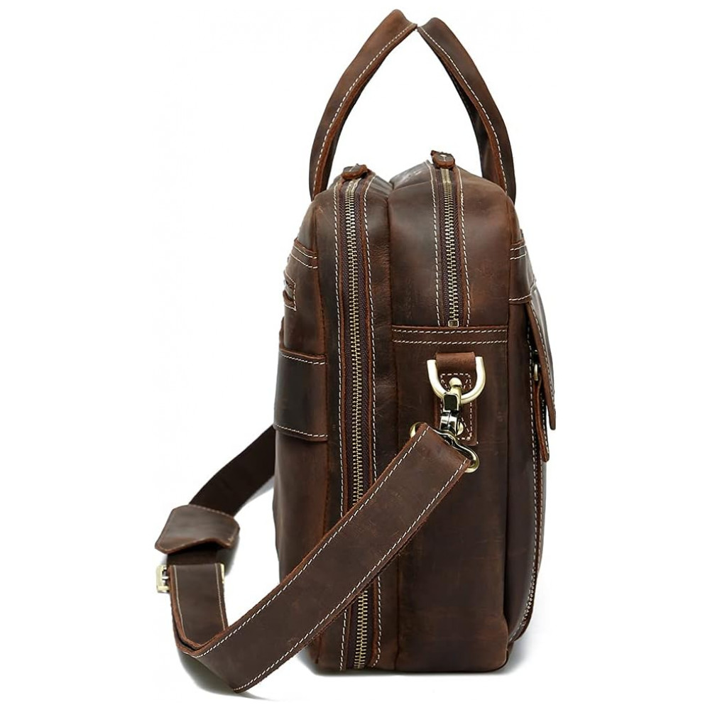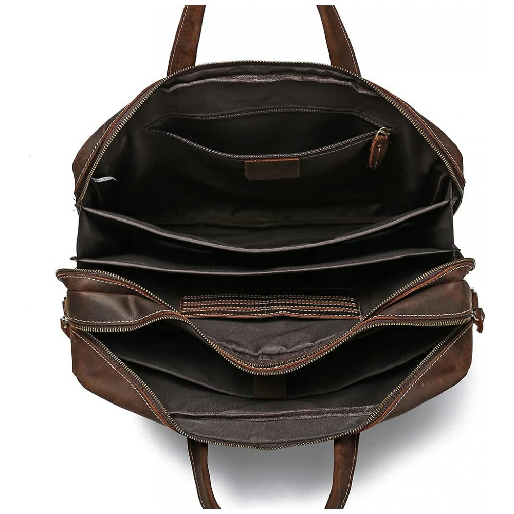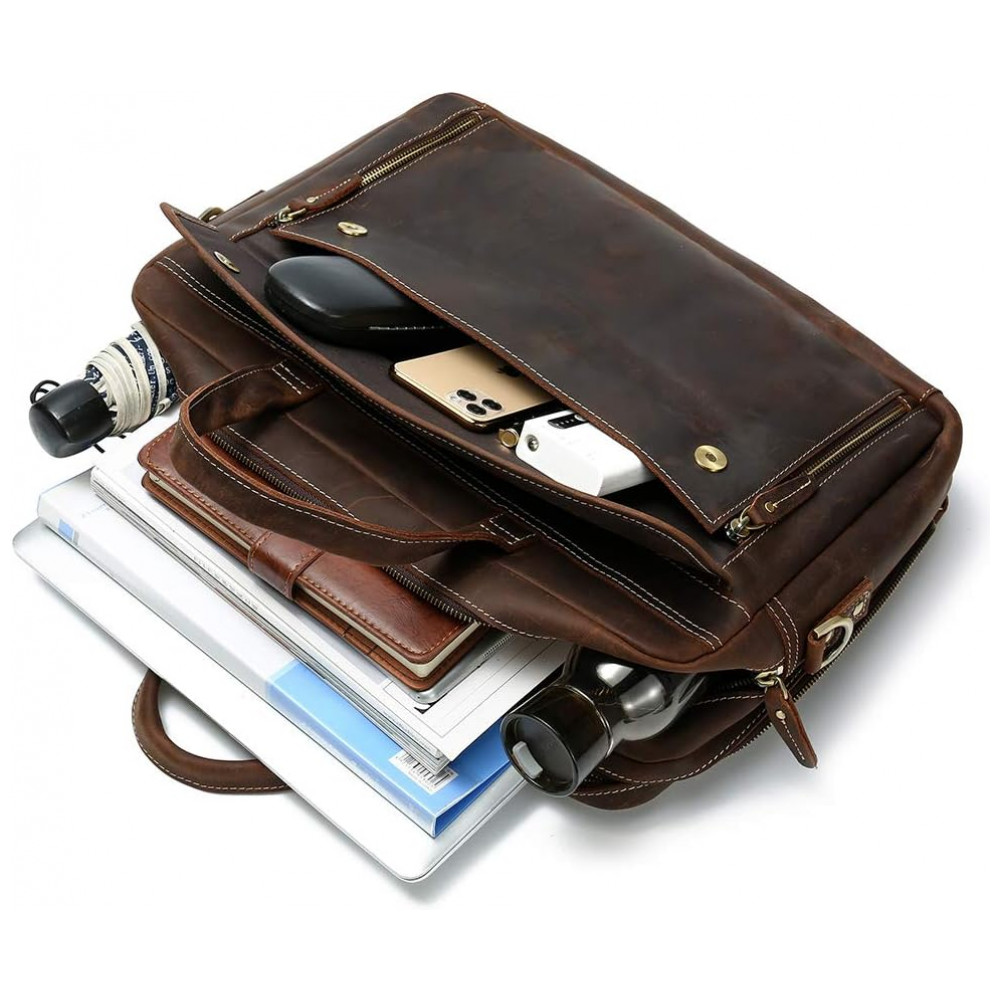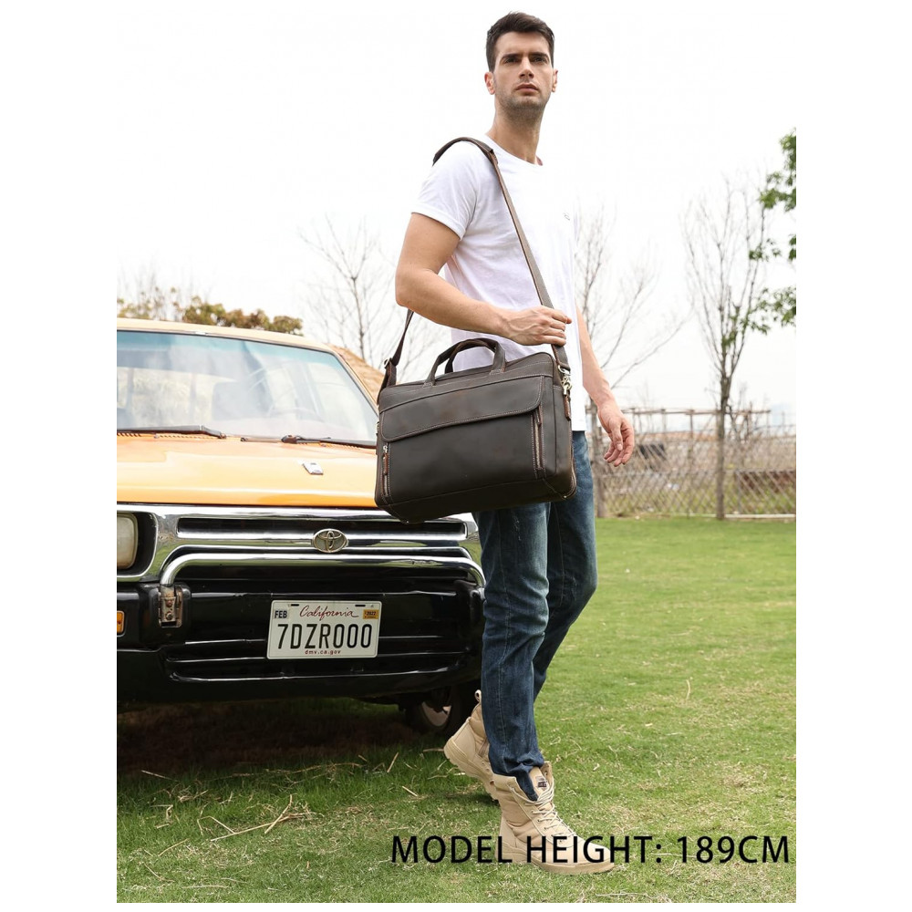 Bolsa, Pasta de Couro Masculina para Laptop, LANNSYNE GP33817, Marrom: 2 compartimentos principais, dentro da manga com aba segura para um laptop de .