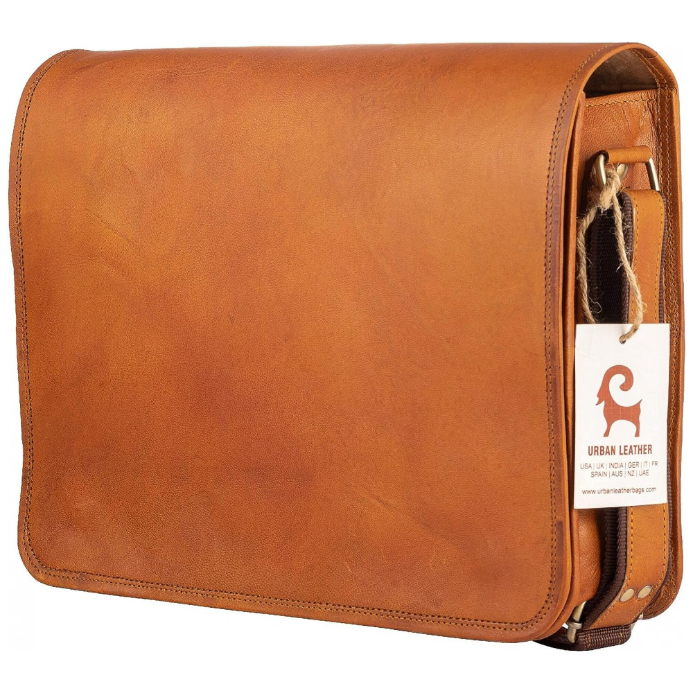 A bolsa mensageiro envelhecida para homens é feita de couro de anilina de flor integral de cabra de cavalo louco superior, couro encerado resistente à água e forro interno de veludo.