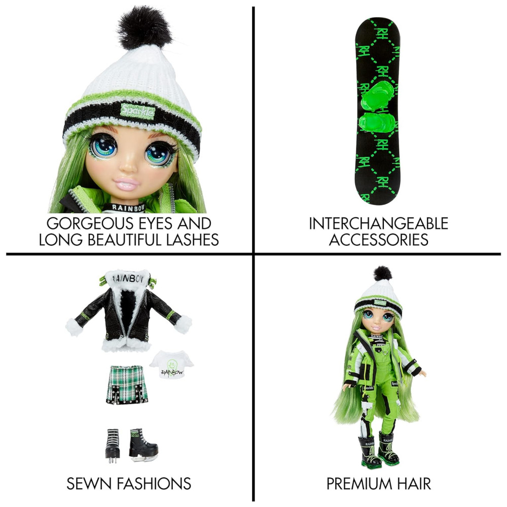 Boneca da Moda com 2 Roupas de Grife Snowboard e Acessórios, RAINBOW HIGH 574781EUC, Verde: DEIXE O ARCO ÍRIS COLORIR ESTE INVERNO FABULOSO As 6 Bonecas de Moda originais recebem uma reforma de inverno para que possam ir às pistas com seus amigos na moda.