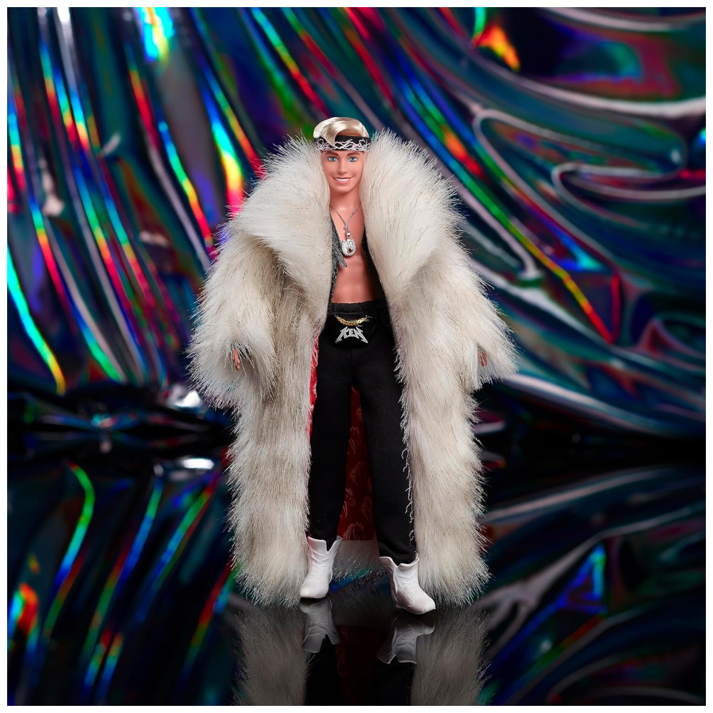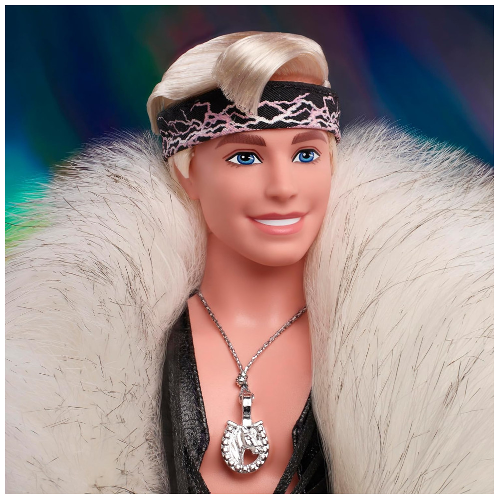 Boneco Ken Colecionável Barbie The Movie com Casaco de Pele Sintético, Colete de Franjas Pretas e Bandana, Barbie