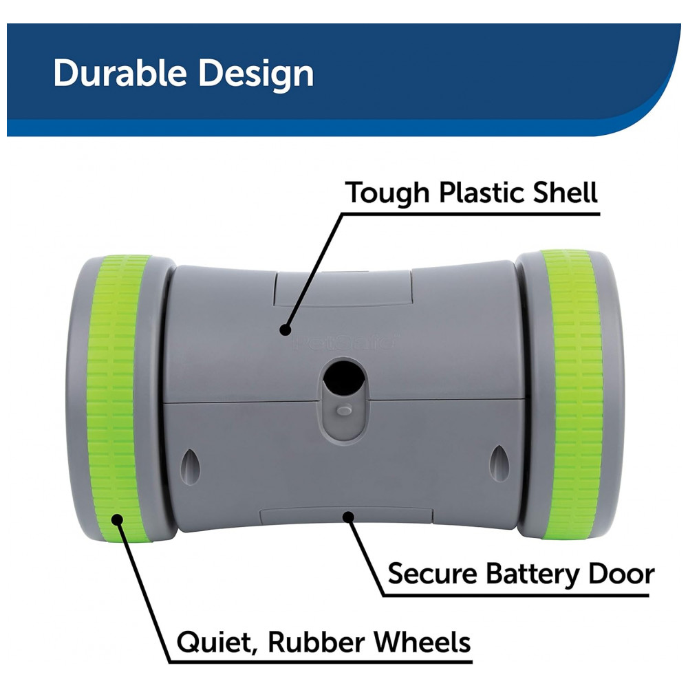 Brinquedo Interativo Automático para Cães, Dispensador de Petiscos, PETSAFE PTY00 16858, Cinza: MANTÉM O INTERESSE DO SEU CÃO movimentos de brinquedo envolventes em uma ação rolante imprevisível enquanto solta guloseimas aleatoriamente para atrair seu cão ENCORAJA O JOGO ATIVO Movimentos automáticos divertidos mantêm cães de todos os tamanhos ocupados com um jogo de caça e guloseimas SOLUÇÃO DE ALIMENTAÇÃO LENTA A abertura da janela ajustável permite que você controle a rapidez com que os alimentos são dispensados contém até meia xícara de ração seca ou guloseimas duras com menos de meia polegada de largura CONSTRUÇÃO DE QUALIDADE O invólucro de plástico durável e a porta da bateria segura resistem a jogos difíceis, e as rodas de borracha resistentes rolam silenciosa e facilmente na maioria das superfícies de piso interno MODO DORMIR Este brinquedo eletrônico dá ao seu cão uma pausa após 10 minutos, mas estará pronto para brincar novamente se for cutucado requer 3 pilhas AA não incluídas