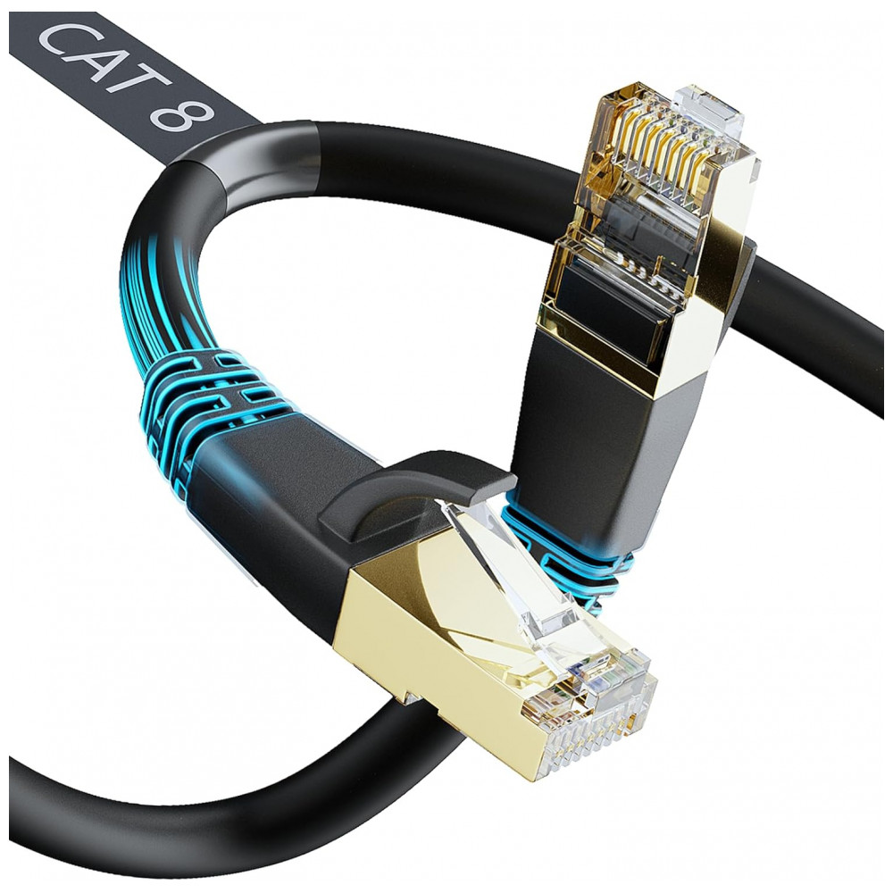 Cabo de Internet Cat8 12M Vel, 40Gbps, 2000Mhz com Conector RJ45, DBILLIONDA, Preto