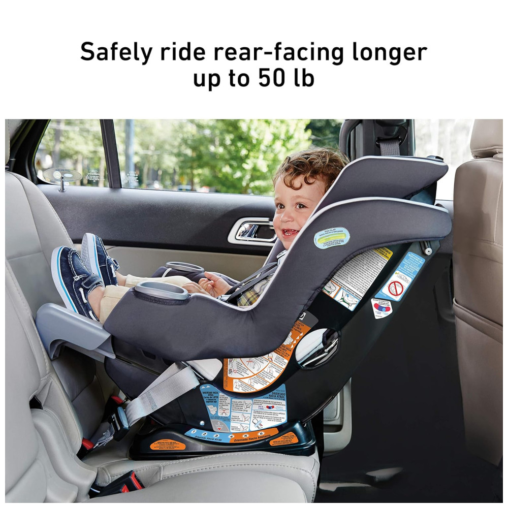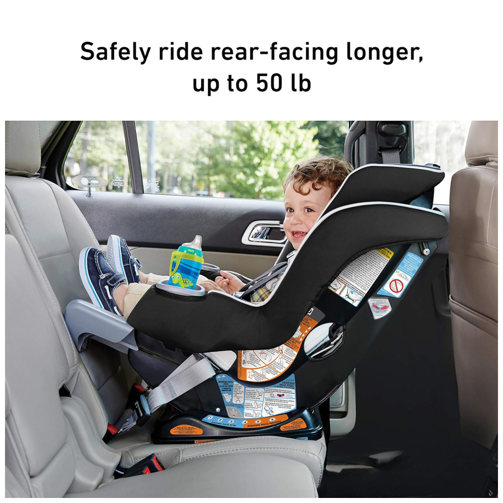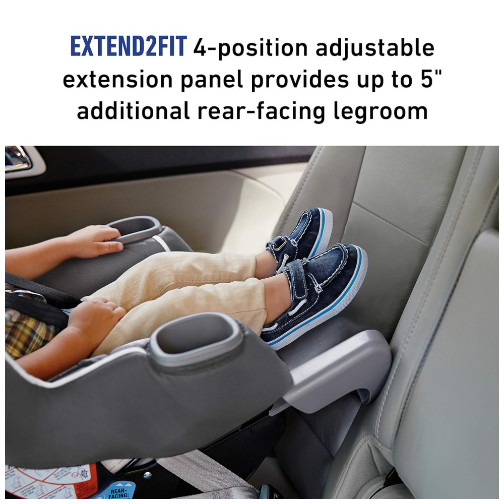 O painel de extensão ajustável de 4 posições Extend2Fit oferece até 5 adicional de espaço para as pernas, permitindo que seu filho ande com segurança voltado para trás por mais tempo.