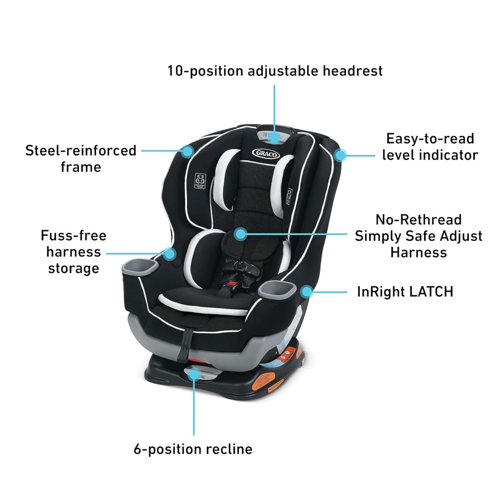 Cadeira de Bebê para carro Extend2Fit conversível, preta, GRACO 1963212, Preto