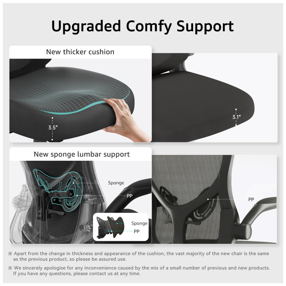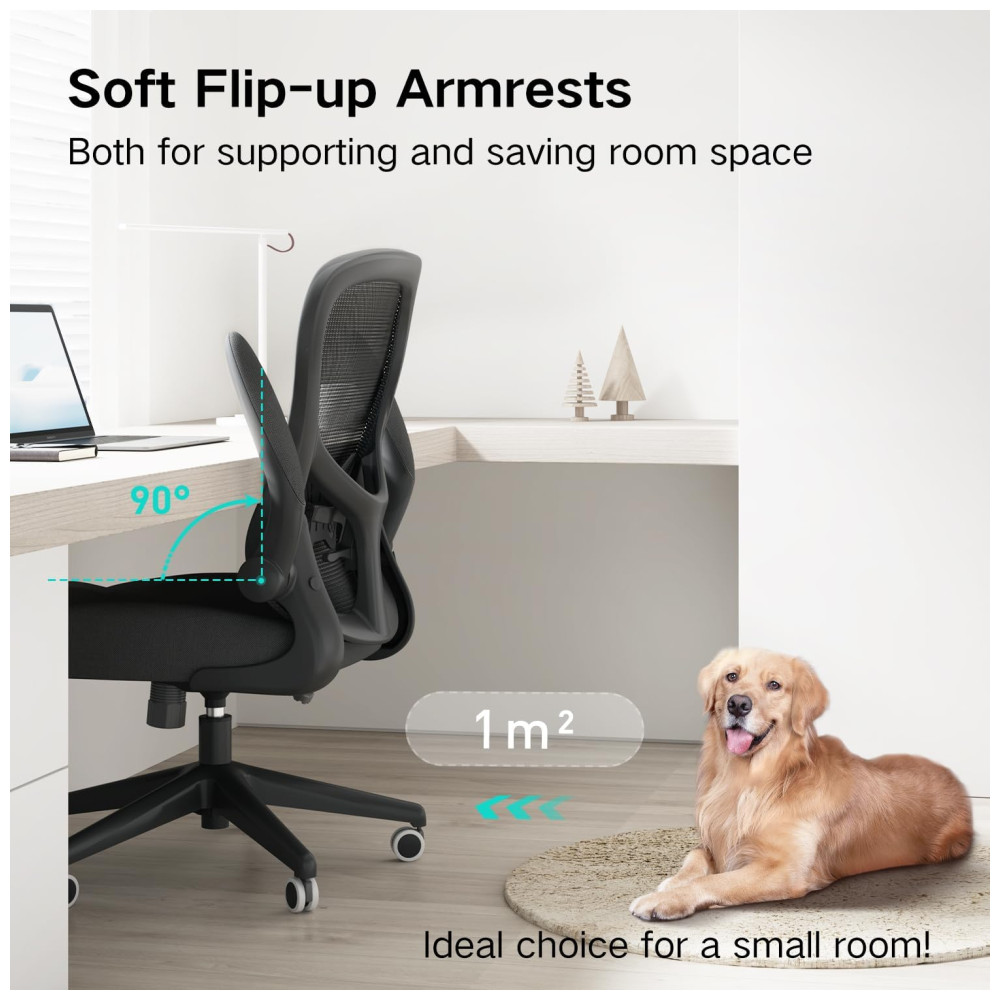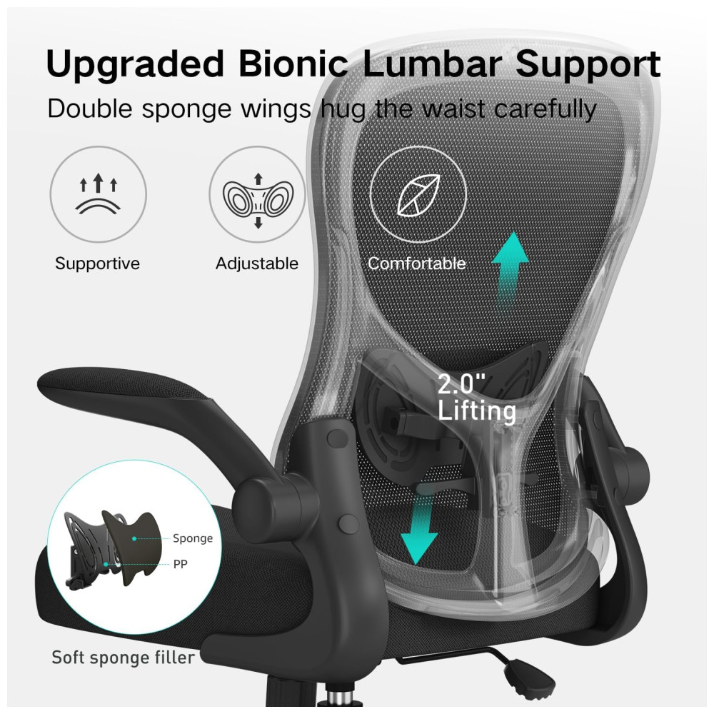 Cadeira de Escritório Ergonômica com Apoio para Lombar e Braços Articulados, HBADA HDNY163BM, CB, Preto