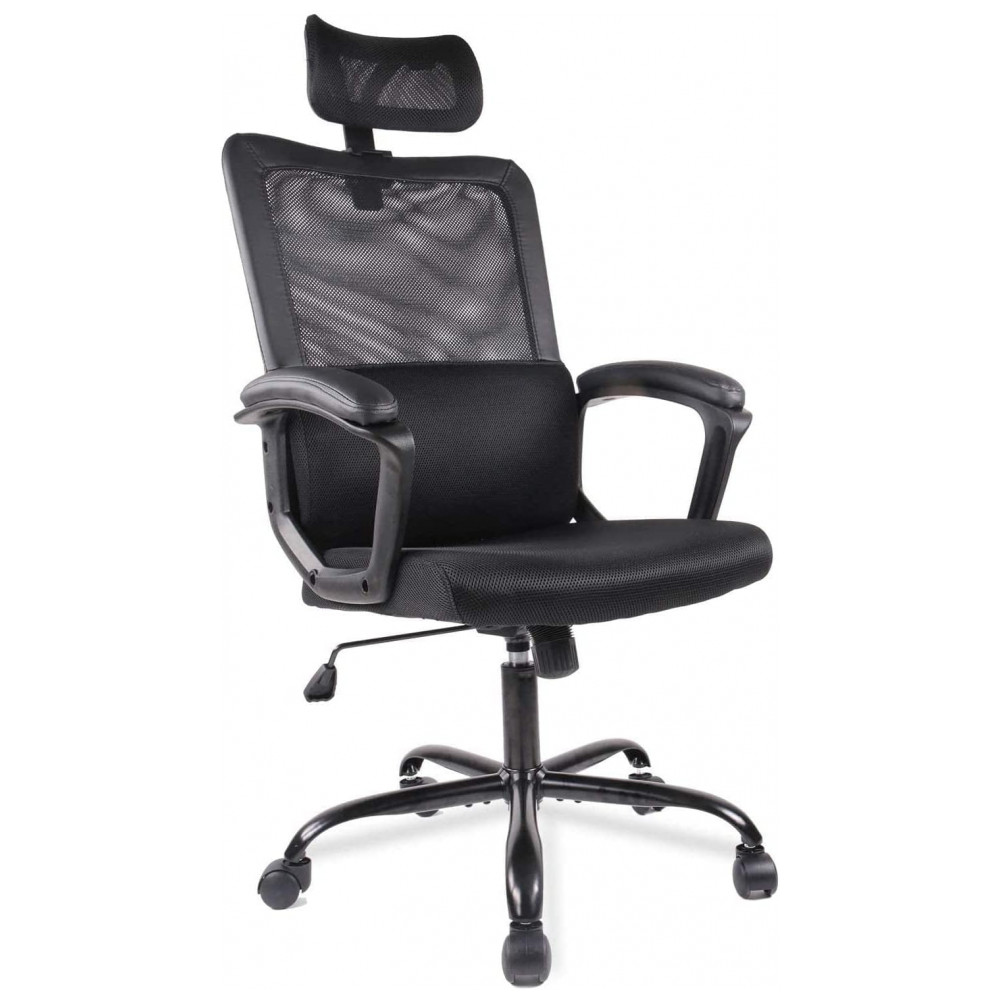 Cadeira de Escritório Ergonômica Giratória com Apoio de Braços e Apoio de Cabeça Ajustável 3D, SMUG Mesh Office Chair BK1, Preto