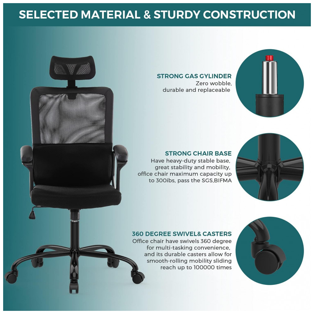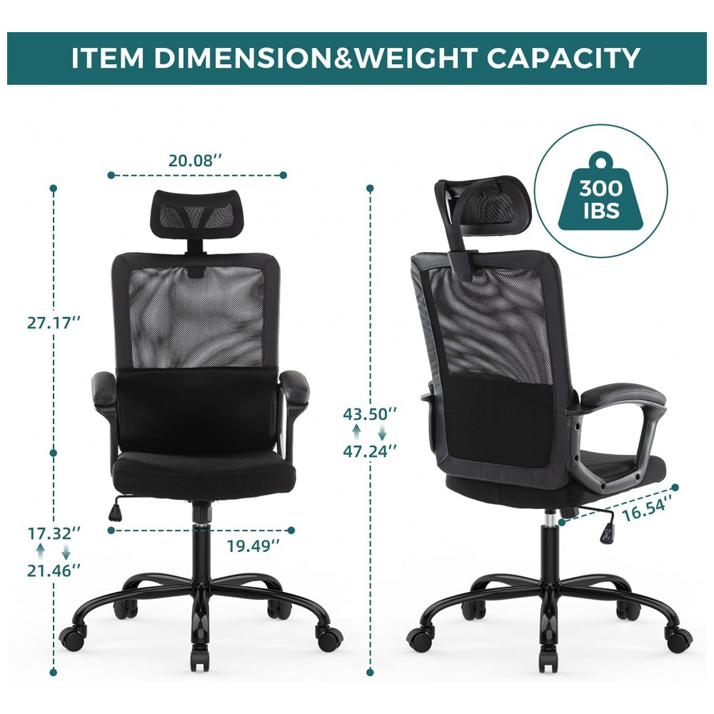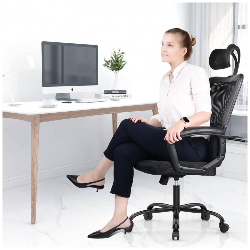 Design ergonômico Esta cadeira de escritório ergonômica com apoio de cabeça ajustável e suporte lombar foi projetada para se ajustar à curva do seu corpo e garantir que você se sen…