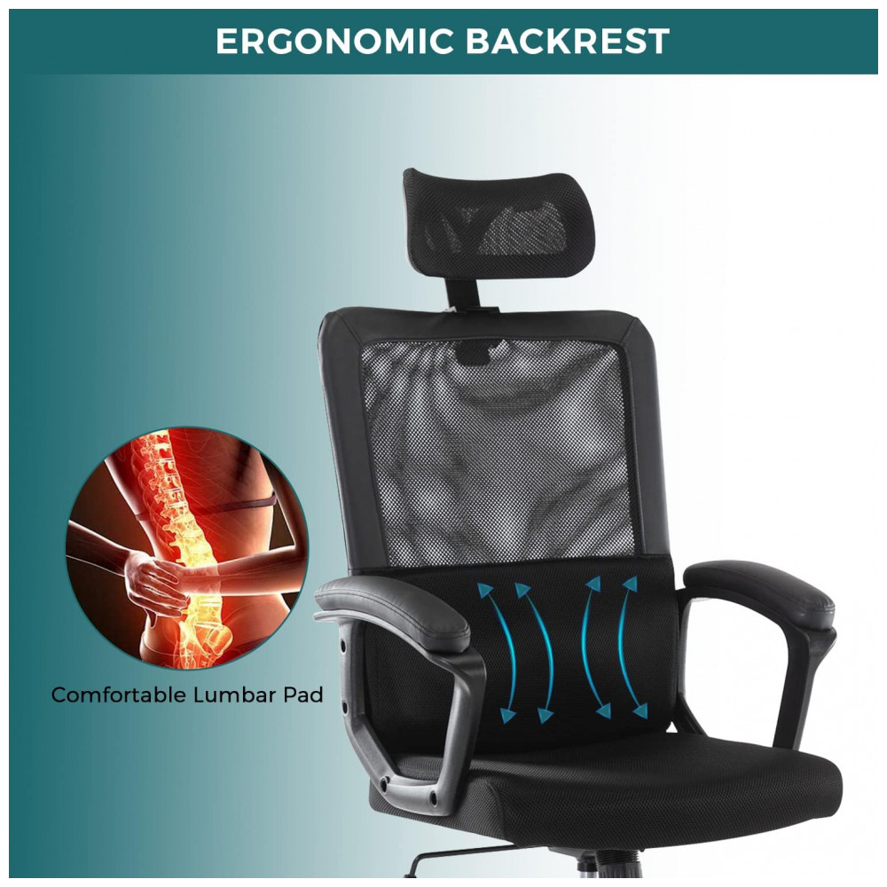 Cadeira de Escritório Ergonômica Giratória com Apoio de Braços e Apoio de Cabeça Ajustável 3D, SMUG Mesh Office Chair BK1, Preto: Design ergonômico Esta cadeira de escritório ergonômica com apoio de cabeça ajustável e suporte lombar foi projetada para se ajustar à curva do seu corpo e garantir que você se sente confortavelmente.