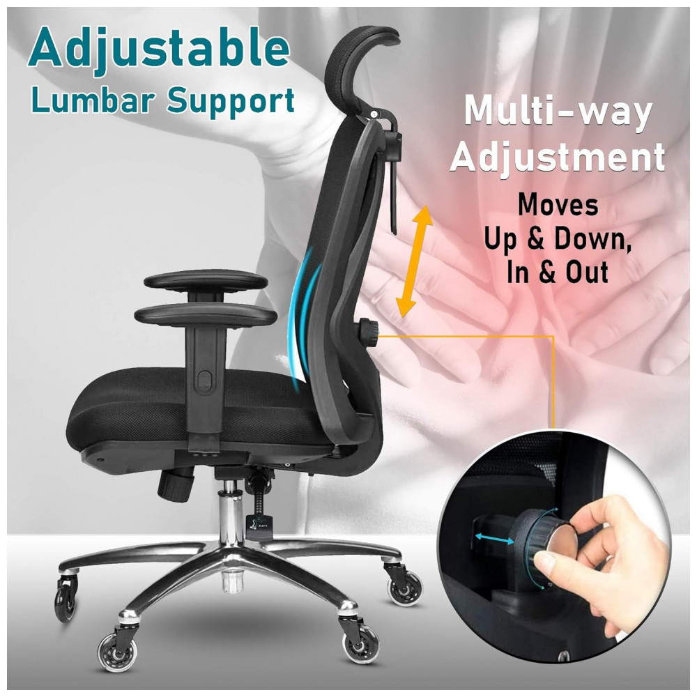 O ar frio circula através da malha, mantendo as costas livres de suor e permitindo que você se sente confortavelmente na cadeira por mais tempo em comparação com as cadeiras tradicionais SUPORTE TOTALMENTE AJUSTÁVEL Tem problemas nas costas ou não quer desenvolvê los Nossa cadeira de escritório exclusiva inclui suporte lombar ajustável que entra e sai, sobe e desce, e um recurso de reclinação que permite inclinar o encosto para trás ou sentar reto.
