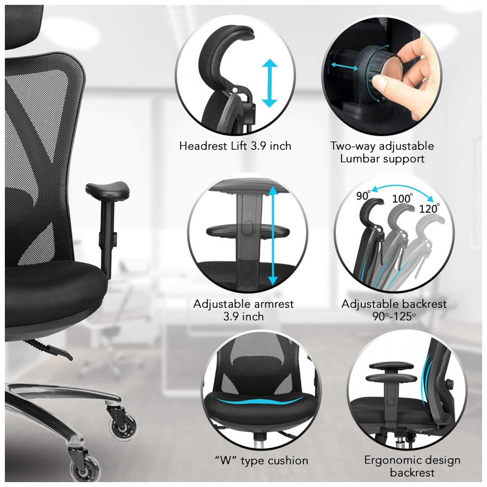 Agora você pode encontrar rapidamente uma posição que faça com que suas costas se sintam mais confortáveis FÁCIL DE INSTALAR Instruções simples permitem que qualquer pessoa monte esta cadeira executiva em oito etapas simples Então, uma vez construída, você poderá ajustar a cadeira às suas necessidades individuais.