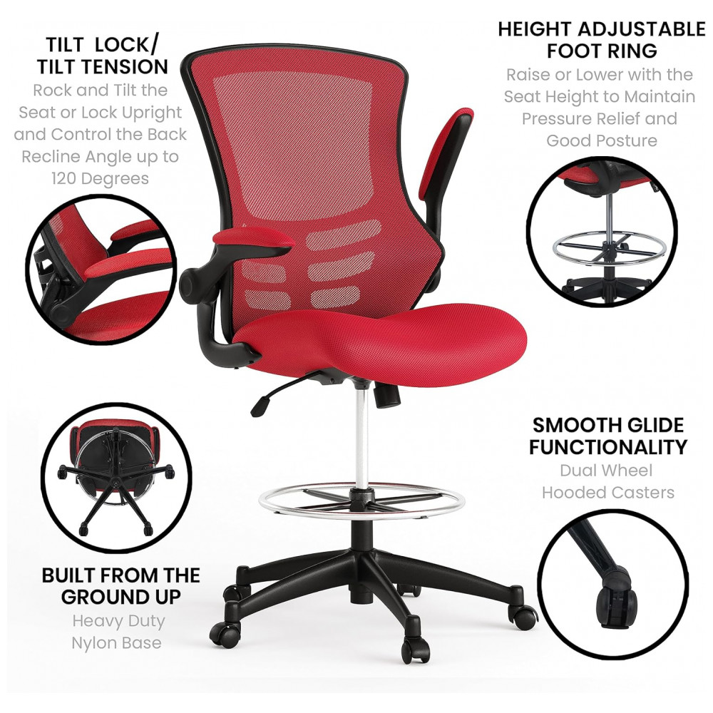 Cadeira de Escritório Ergonômica Giratória com Encosto Médio, FLASH FURNITURE BL X 5M D RED GG, Vermelho: Espuma, Malha, Metal, Plástico, Madeira Compensada Esteja você subindo a escada corporativa no trabalho ou ilustrando seu último quadrinho em casa, uma cadeira confortável é fundamental para o seu sucesso.