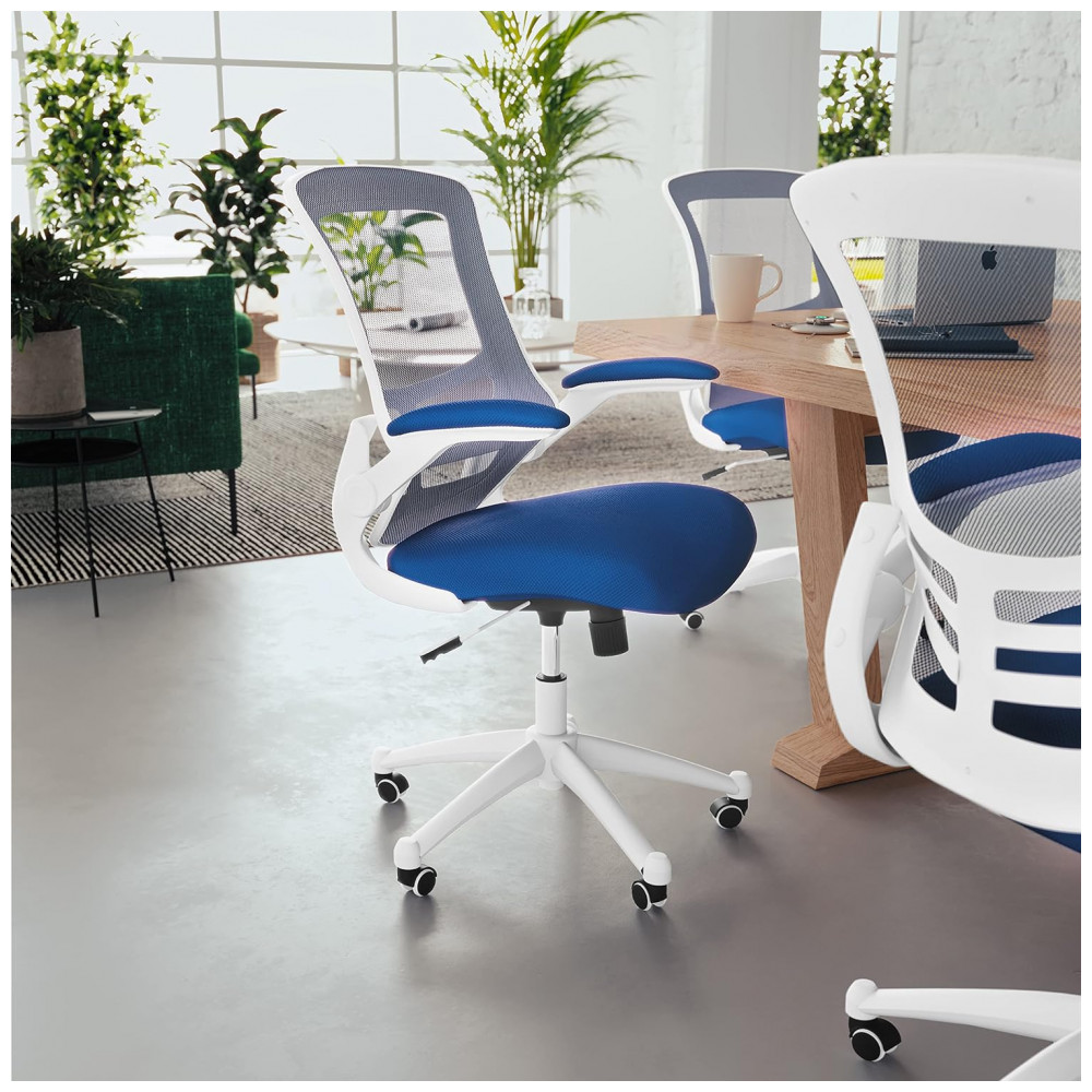Cadeira de Escritório Ergonômica Giratória com Encosto Médio, FLASH FURNITURE BL X 5M WH BLUE GG, Azul: Espuma, Malha, Metal, Plástico, Madeira Compensada Mude a vibe do seu escritório com esta cadeira de escritório com moldura branca combinada com malha azul.
