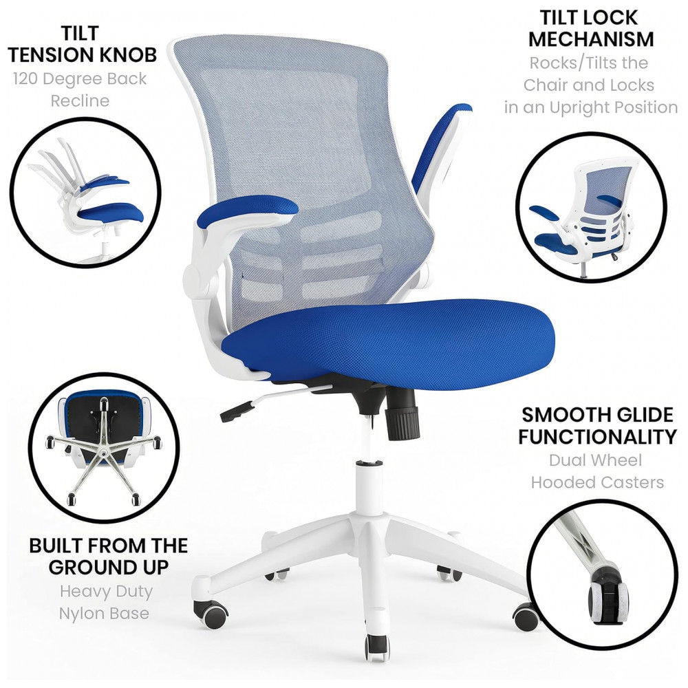 Cadeira de Escritório Ergonômica Giratória com Encosto Médio, FLASH FURNITURE BL X 5M WH BLUE GG, Azul