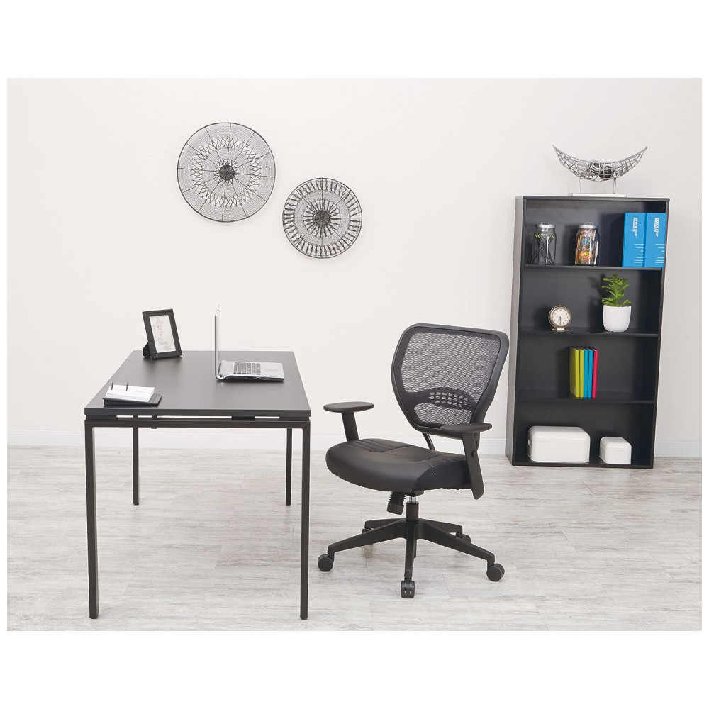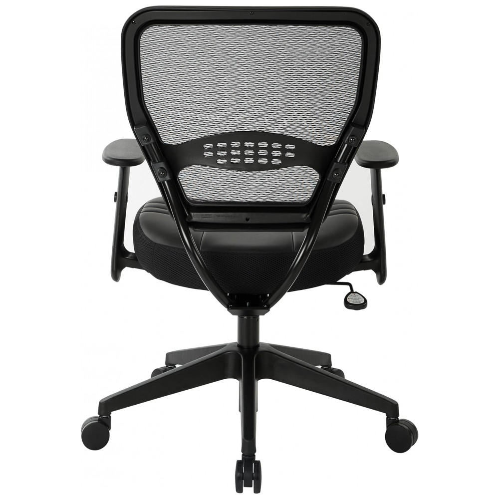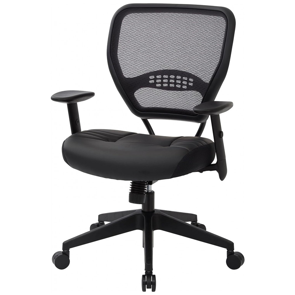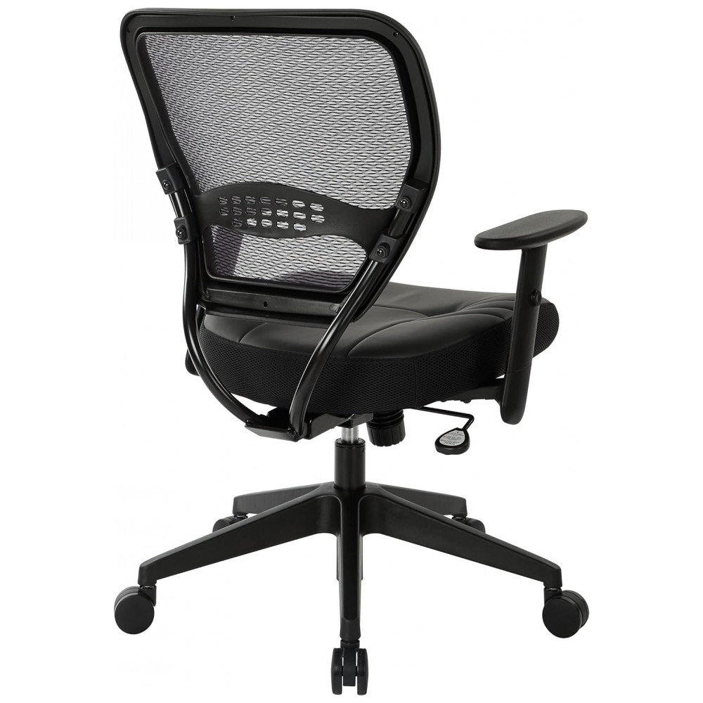 Cadeira de Escritório Ergonômica Giratória com Suporte Lombar e Altura Ajustáveis, SPACE SEATING 5700E, Preto: Assento de couro ecológico com revestimento de malha para respirabilidade e conforto Ajuste pneumático da altura do assento com um toque Controle de inclinação sincronizado 2 para 1 com tensão de inclinação ajustável
