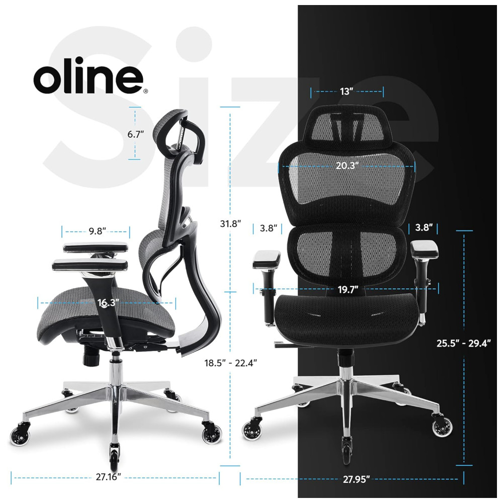 Cadeira de Escritório Ergonômica Giratória e Ajustável com Apoio 4D, OLINE ErgoPro, Preto: AVALIADA A CADEIRA DE ESCRITÓRIO ERGONÔMICA N 1 A cadeira de escritório ergonômica Oline ErgoPro foi projetada para dar suporte adequado às costas e ao corpo enquanto você se senta ajuste o apoio de cabeça, apoios de braços, altura e inclinação do joelho para personalizar ao seu corpo.