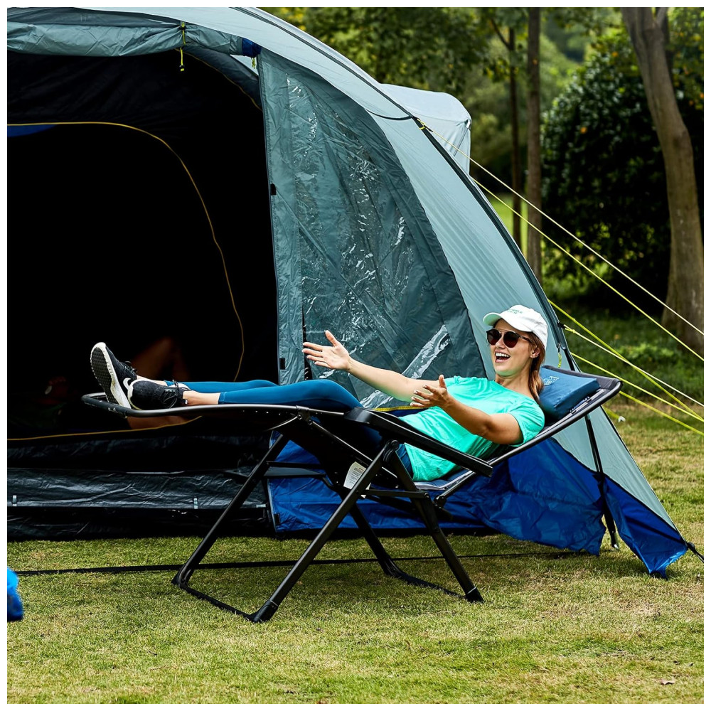 Cadeira Reclinável Ajustável Gravidade Zero com Apoio de Cabeça, TIMBER RIDGE, Azul: POSIÇÕES AJUSTÁVEIS A cadeira de camping reclinável é projetada com um sistema de travamento e pode ser ajustada para a posição desejada, desde vertical até totalmente relaxada DESIGN CONFORTÁVEL A cadeira reclinável para exterior foi concebida com assentos totalmente acolchoados e uma almofada removível para apoio de cabeça e lombar esta cadeira de gramado reclinável também tem uma mesa lateral deslizante dobrável para descansar seu telefone ou beber PORTA MESA E PARA COPO Com esta cadeira, você sempre pode manter seus itens importantes por perto com a mesa e porta copos mantenha suas bebidas, lanches, telefones ou qualquer outra coisa ao seu alcance