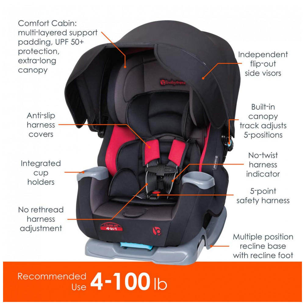 Cadeirinha de Bebê 4 em 1 para Auto Ajustável e Segura, BABY TREND CV89D07B, Preto