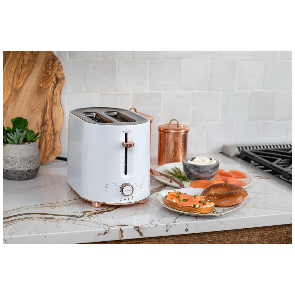 Café Torradeira Elétrica de 2 Fatias com 8 Níveis de Tostagem e Função Bagel, Branca, 110v, CAFE C9TMA2S4PW3, Branco