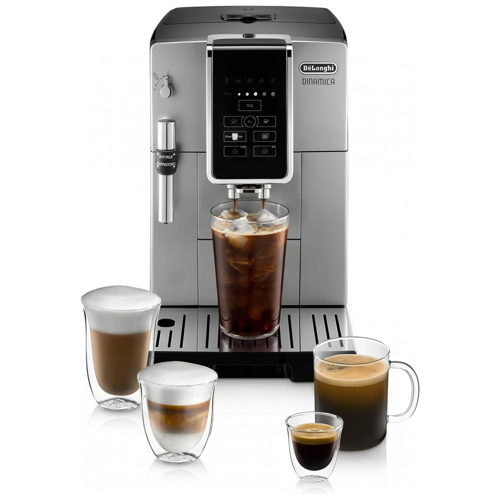 Cafeteira Elétrica e Máquina de café Expresso Dinamica TrueBrew, faz café gelado, moedor de café, espumador ajustável premium descalcificador, aço inoxidável, 110v, DELONGHI ECAM35025SB, Prateado: