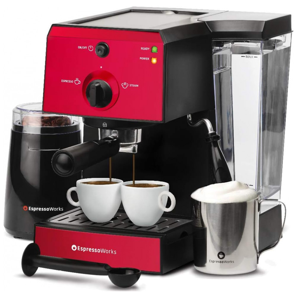 Cafeteira Elétrica Expresso 1.2L com Espumador e Moedor 15 Bar 1350W, 110v, ESPRESSOWORKS, Vermelho: