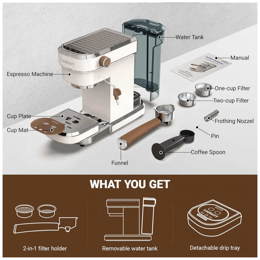 Cafeteira Elétrica Expresso 20Bar com Espumador de Leite, Branca, 110v, LAEKERRT, Branco