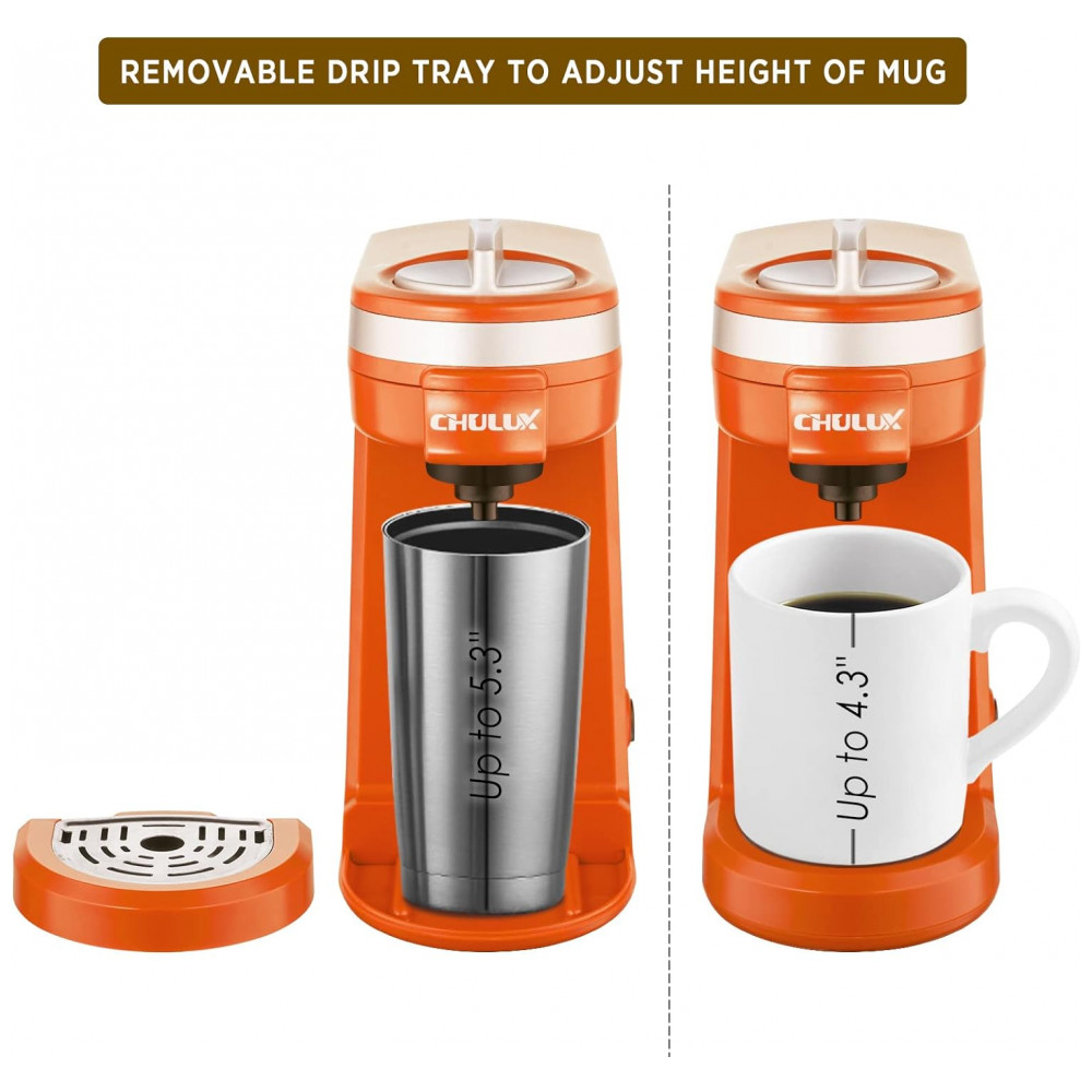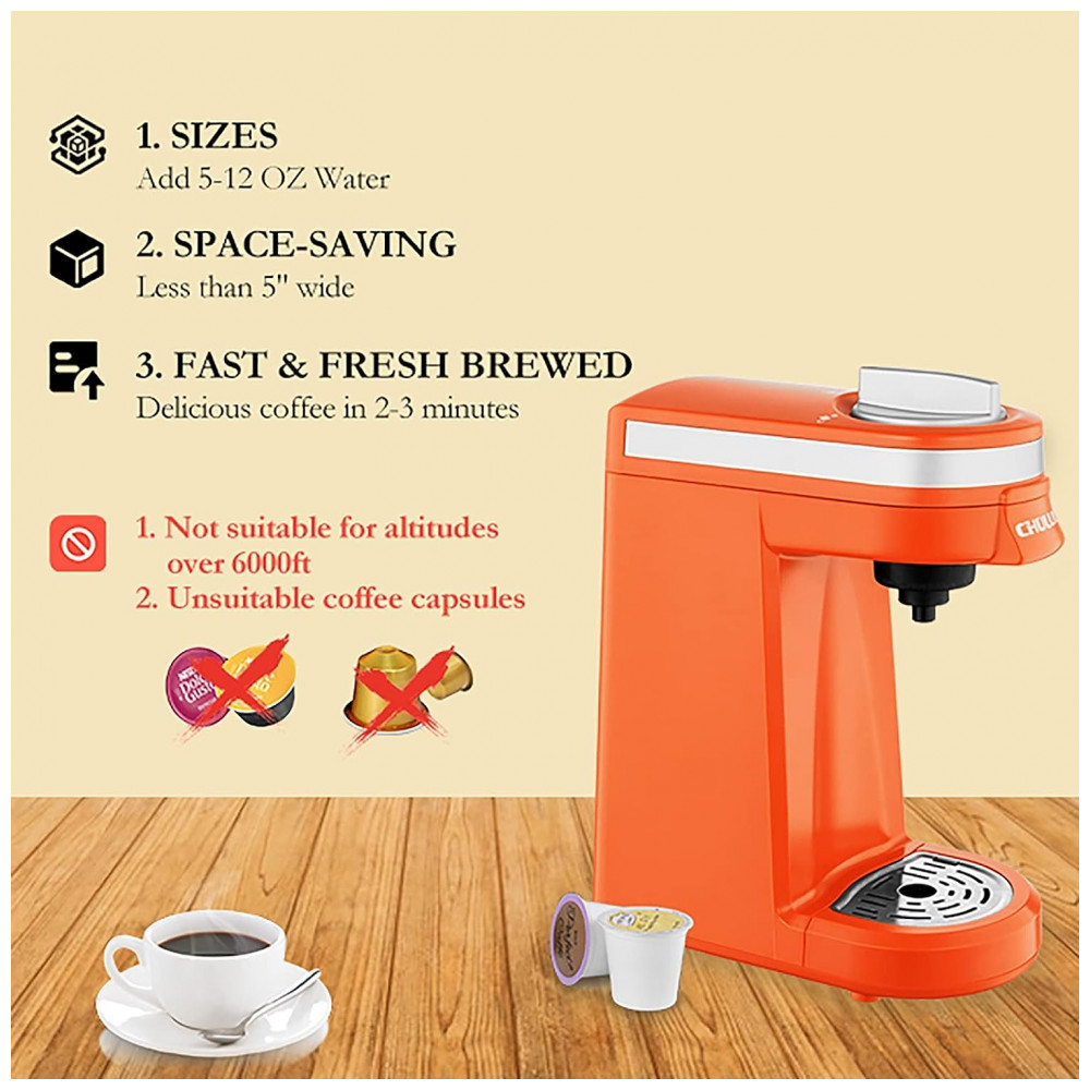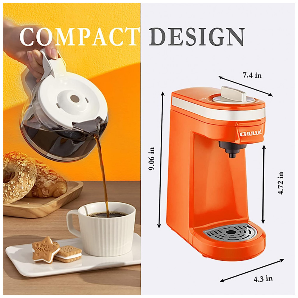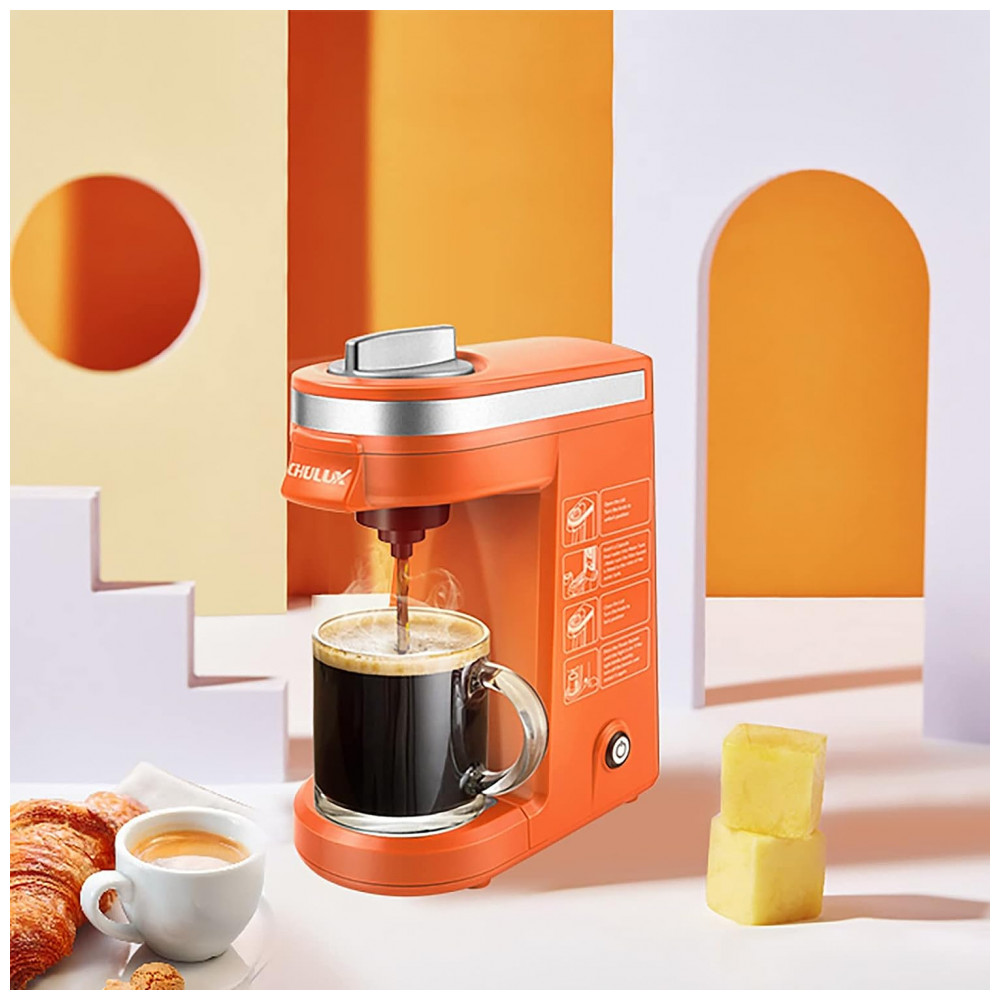 Cafeteira Elétrica Expresso Manual 350mL, 800W, 110v, CHULUX QF CM811, Laranja: SINGLE COFF COFFEE BREWER 12OZ A cafeteira individual CHULUX se encaixa em cápsulas de café de 1,0 e 2,0 cápsulas para atender ao seu multi favor.