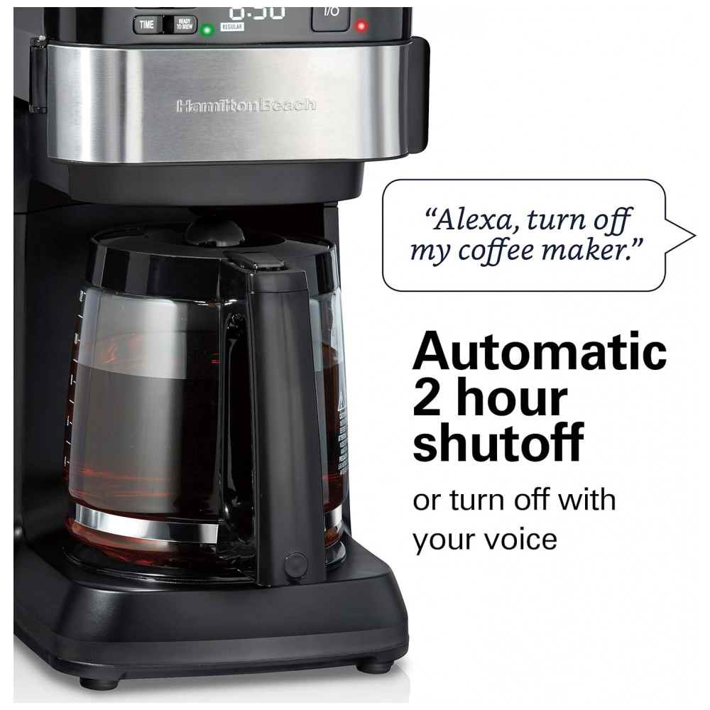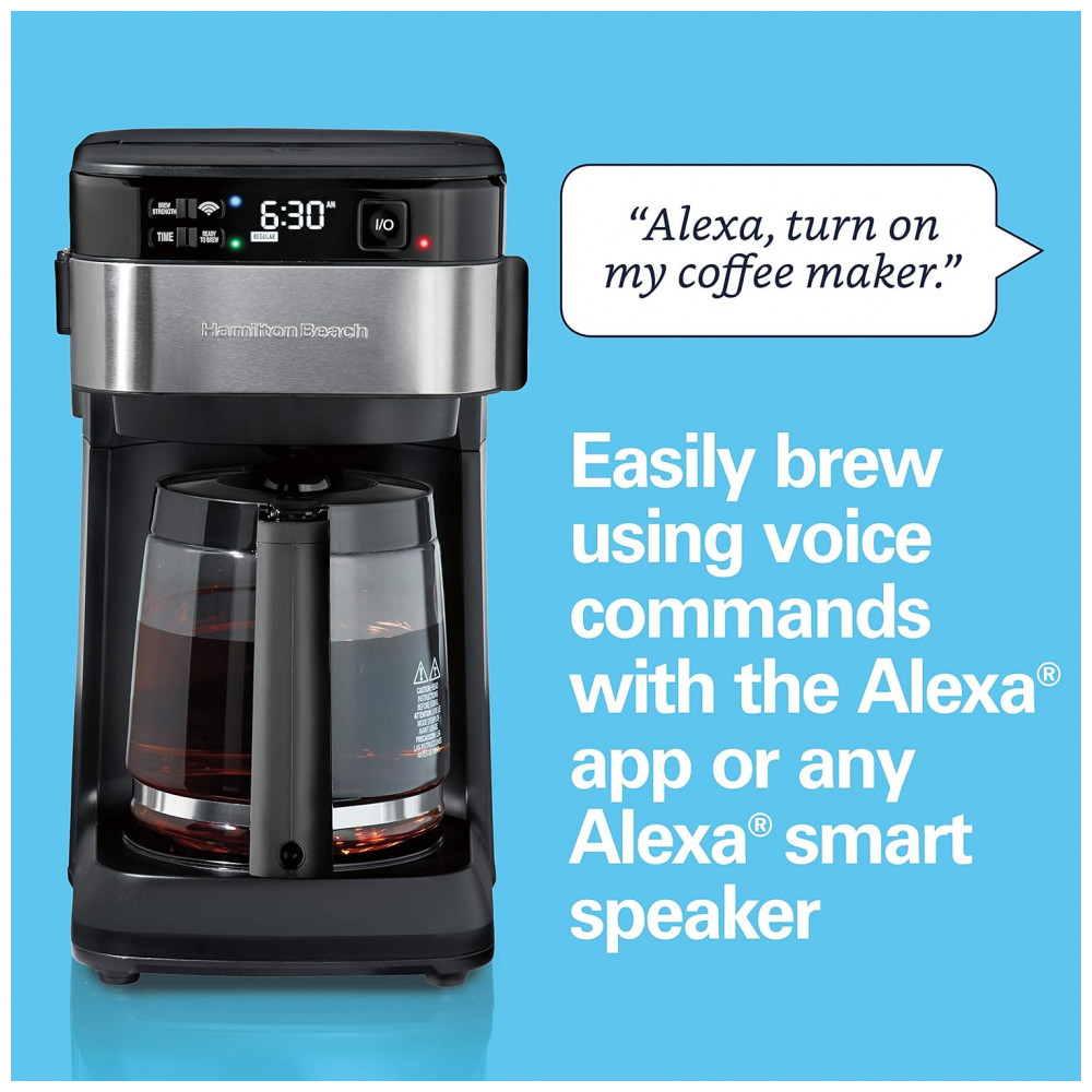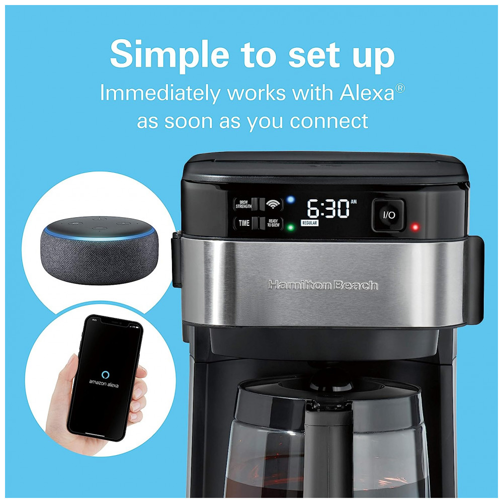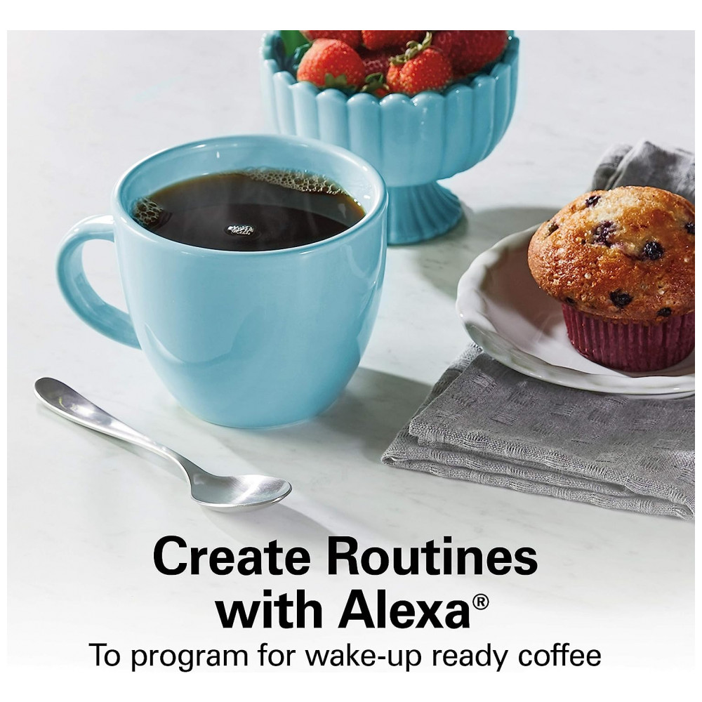 Alexa, ligar minha cafeteira, a cafeteira inteligente de 12 xícaras funciona com a Alexa, permitindo que você peça ao aplicativo Alexa ou ao alto falante inteligente Alexa para com…
