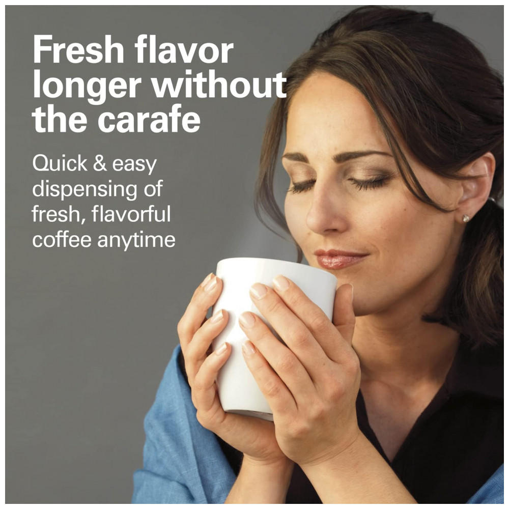 Além de eliminar a necessidade de derramar café de uma jarra, a cafeteira dispensadora BrewStation com reservatório removível simplifica outra tarefa complicada encher o reservatório de água.