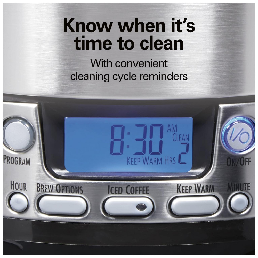 Cafeteira Elétrica Programável 12 xícaras Aço Inoxidável Reservatório Removível, HAMILTON BEACH 47950, Prateado