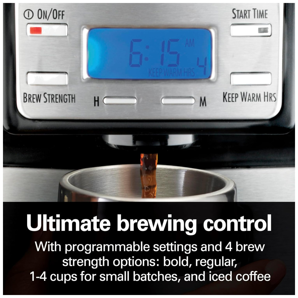 Cafeteira Elétrica Programável de 2.8L, 950W, Aço Inoxidável, 110v, HAMILTON BEACH 48465, Preto