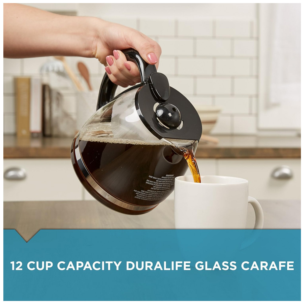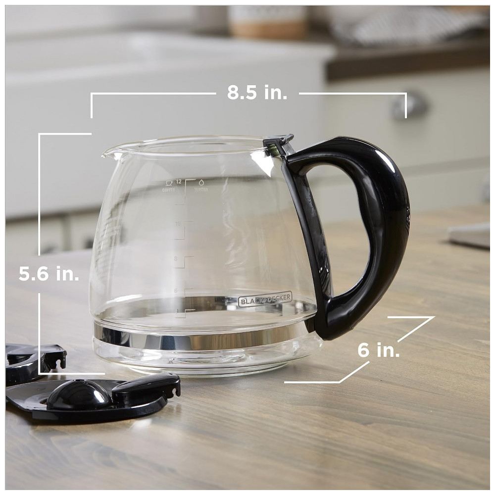 Jarra de reposição Duralife com capacidade para 12 xícaras ou 3,4 mL Projetado para uso com a maioria das cafeteiras Black Decker. Cabo ergonômico generoso para manter a calma para…