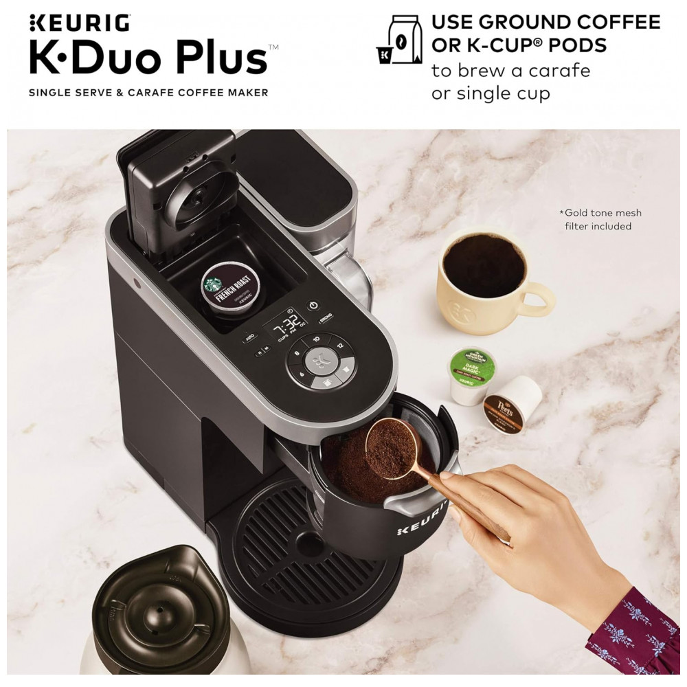 Cafeteira Elétrica Programável K Reservatório 1.7L com Painel de Controle, 1500W, 110v, KEURIG K Duo Plus, Prateado: