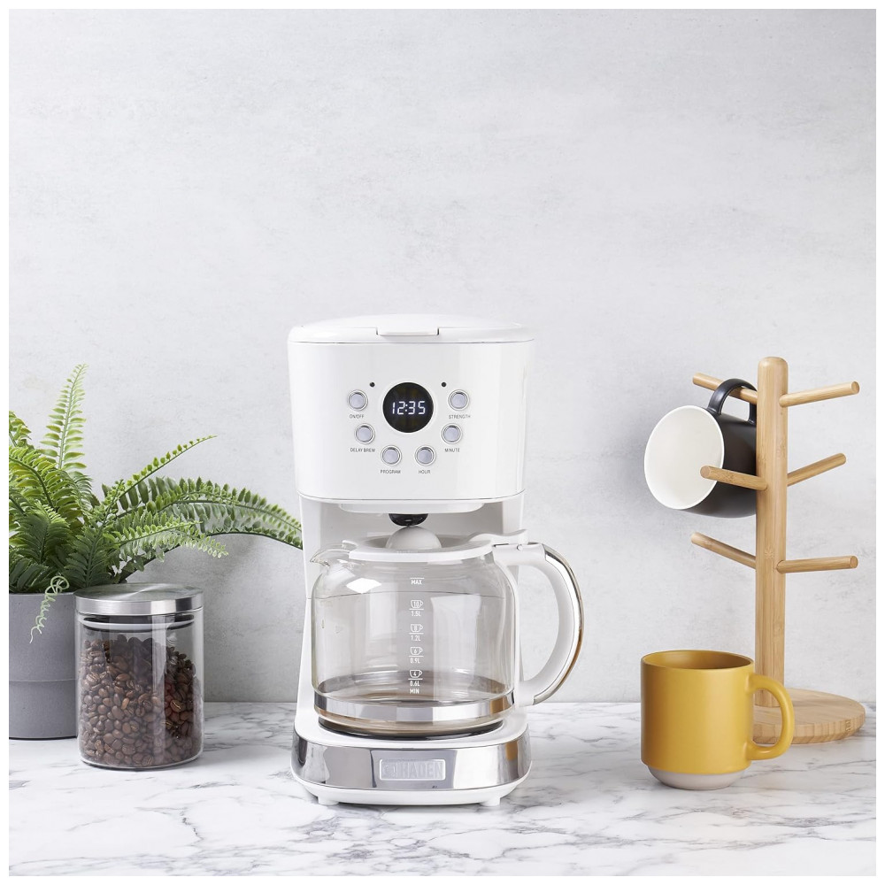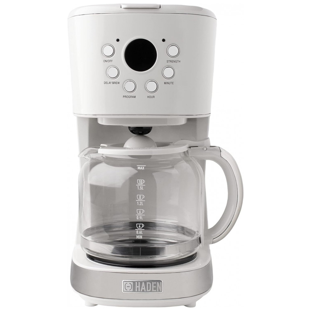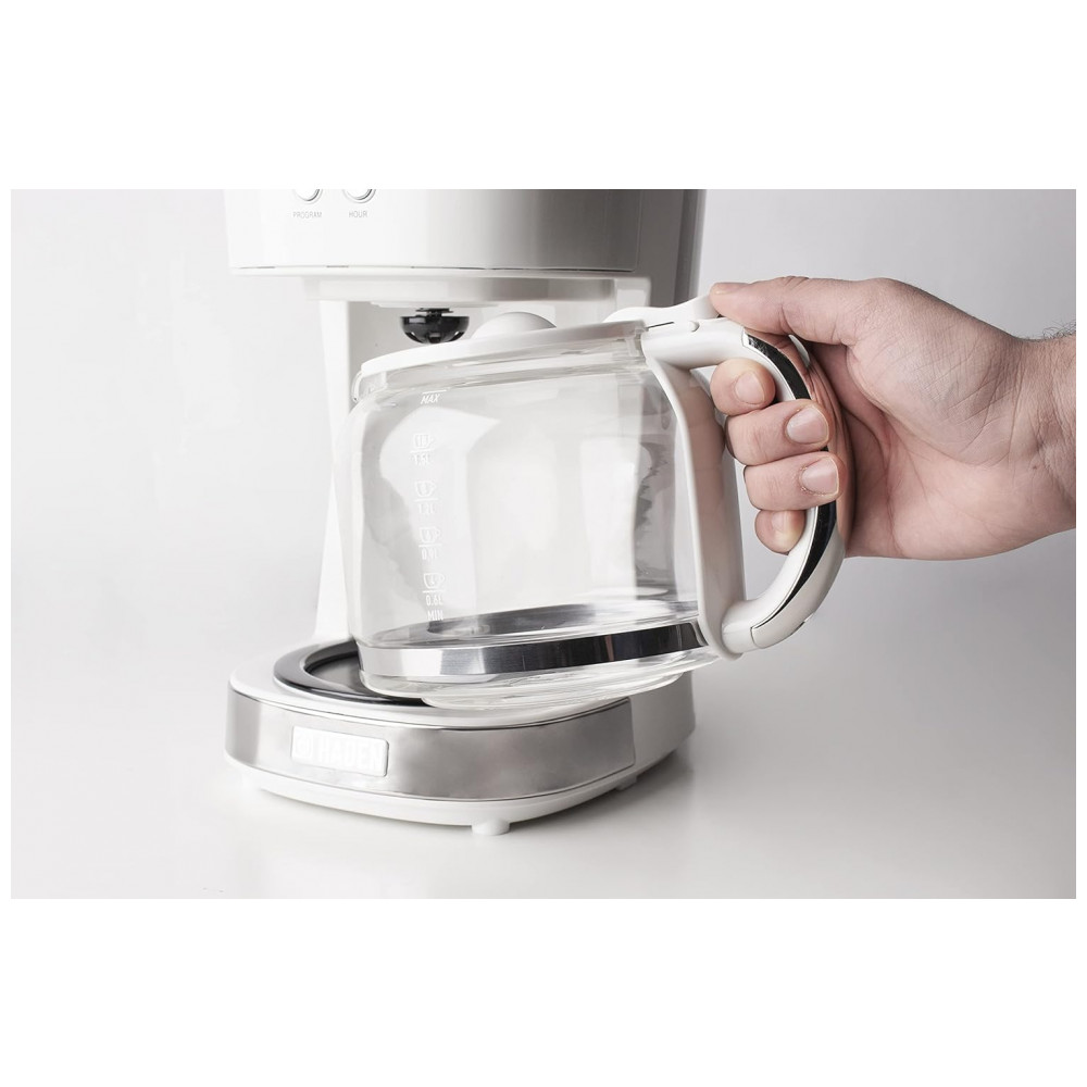 Cafeteira Elétrica Programável Retro, Capacidade 1.5L, Aço Inox, Branca, 110v, HADEN 75061, Branco