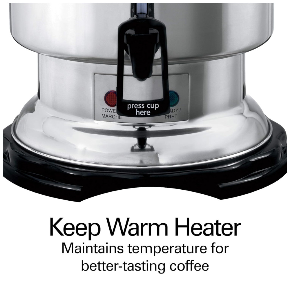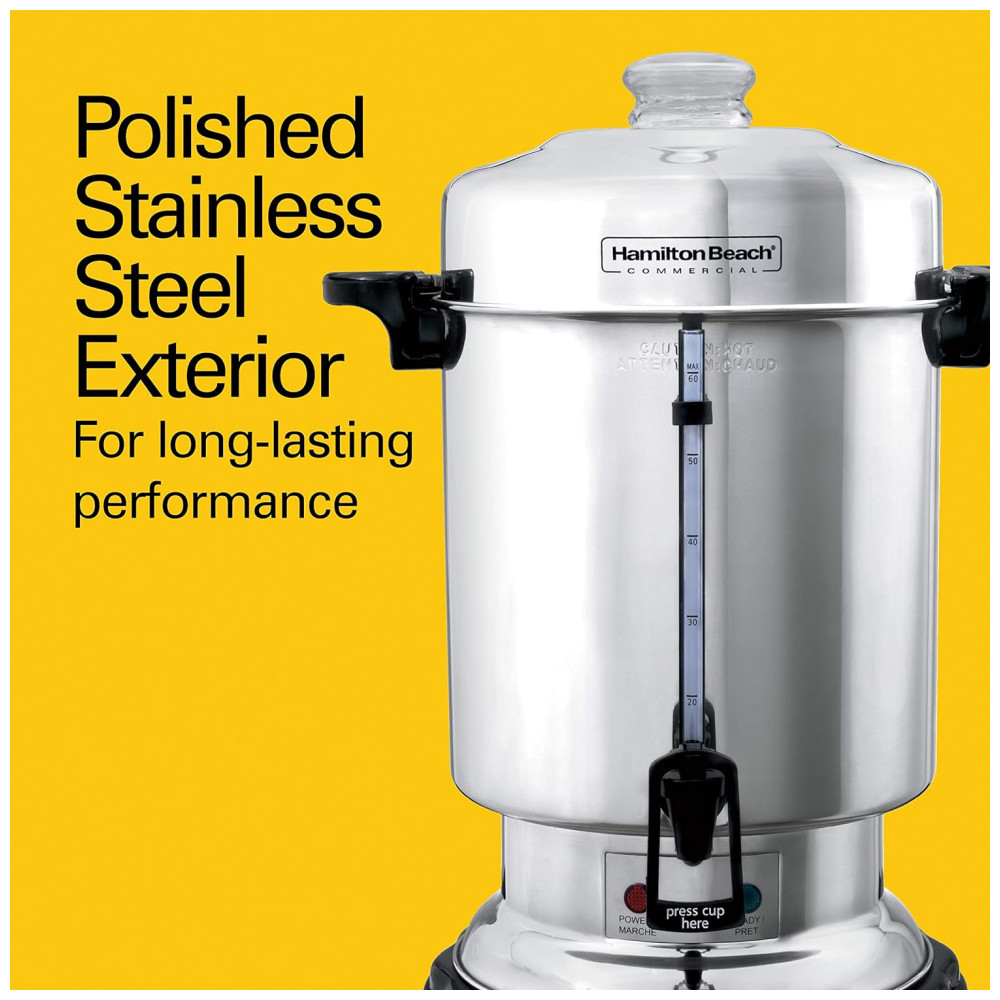 Cafeteira Elétrica Programável Urna em Aço Inoxidável Polido Capacidade de 60 Xícaras Janela de Água, HAMILTON BEACH D50065, Prateado