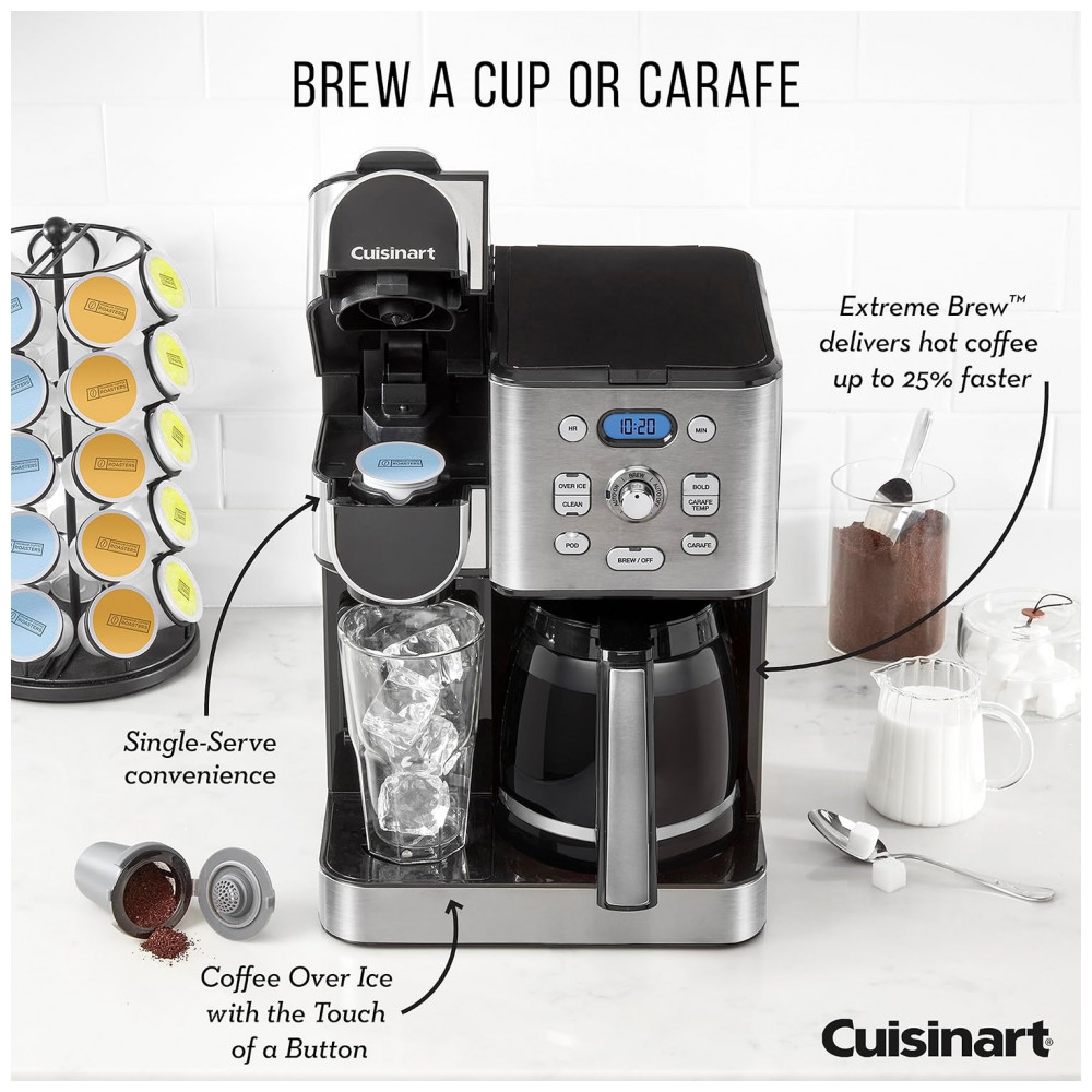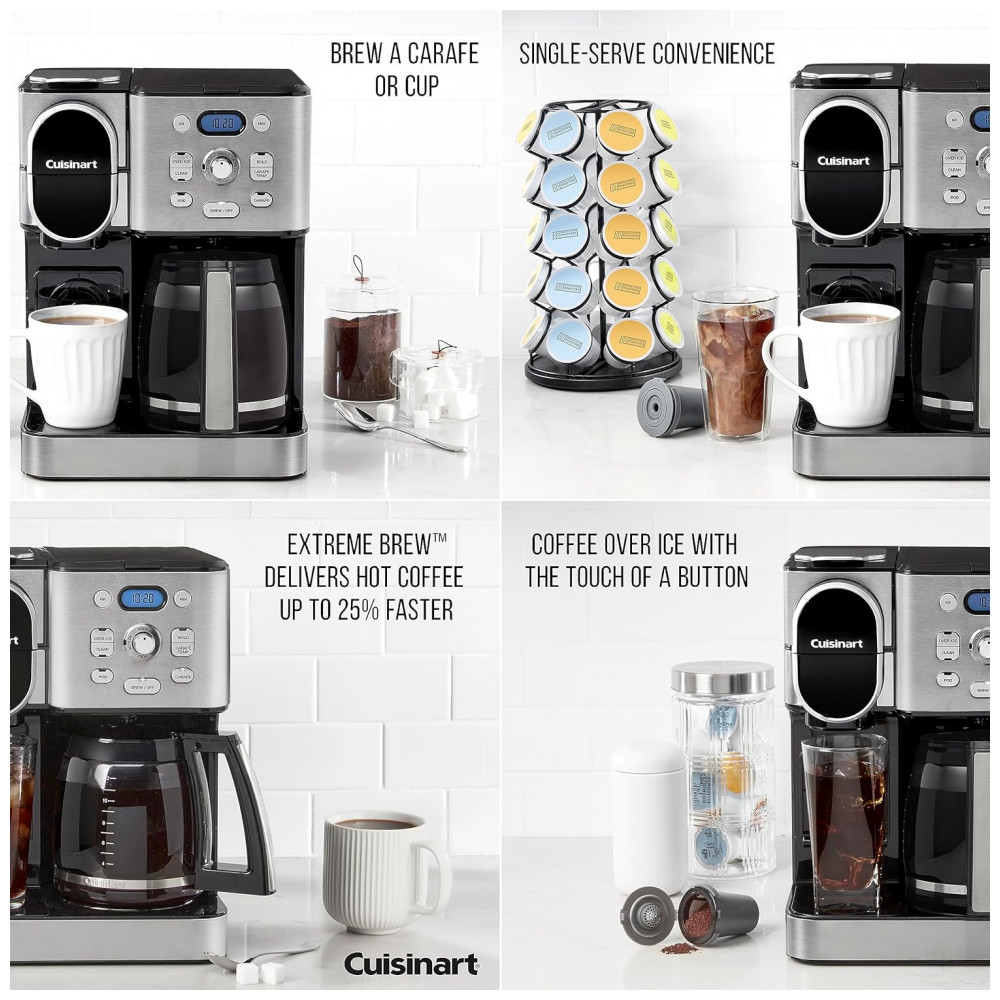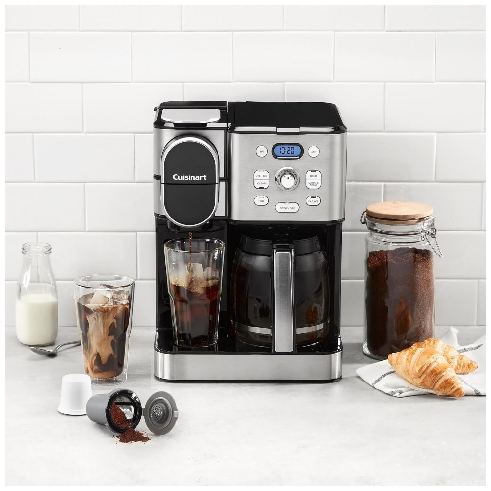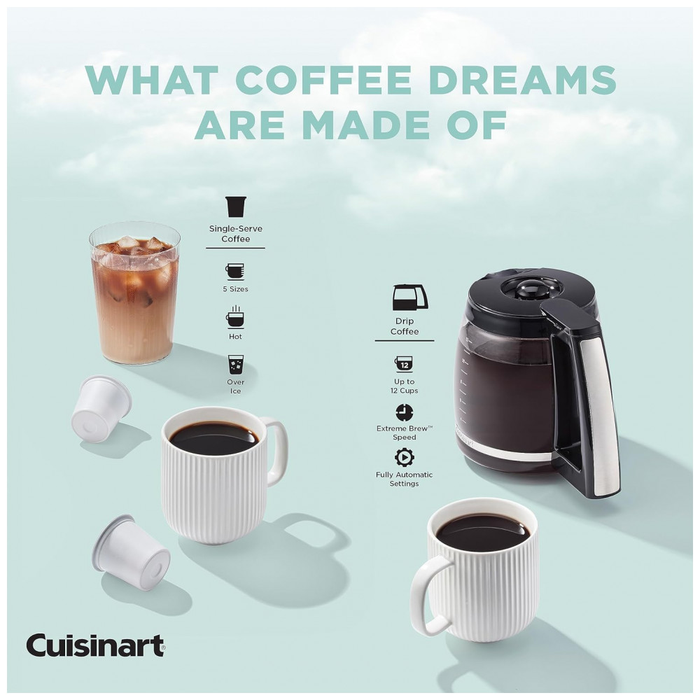 Cafeteira Programável 1 Litro em Aço Inoxidável com Painel Digital, 110V 1100W, Cuisinart SS16, Prata e Preta: PORÇÃO ÚNICA Desfrute de cinco tamanhos de porção 4 onças 113,65 centímetros cúbicos, 6 onças 170,44 centímetros cúbicos, 8 onças 227,30 centímetros cúbicos, 10 onças 283,91 centímetros cúbicos ou 12 onças 340,73 centímetros cúbicos compatível com qualquer marca de cápsula de copo único, incluindo cápsulas Keurig K Cup com um copo de filtro reutilizável opcional para que você possa usar o seu próprio café através de nossos recursos HomeBarista elite Cuisinart despeje sobre o gelo para um café fresco.