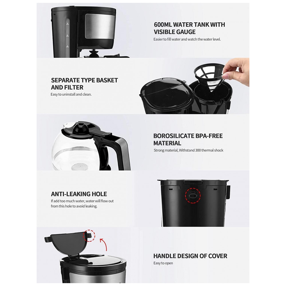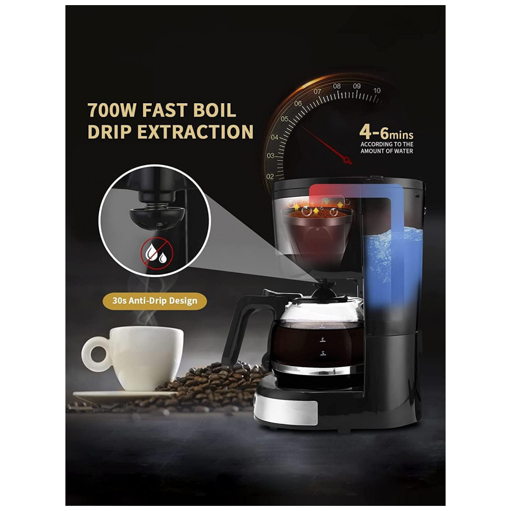 PREPARAÇÃO COM UM TOQUE Fácil de usar. Basta pressionar o botão ON, OFF para preparar. Desfrute de um café saboroso em minutos. Cervejaria com capacidade para 4 xícaras 600ml, perf…