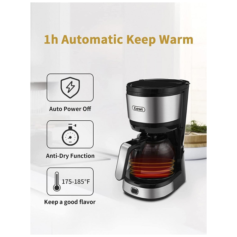 Cafeteira Programável 600mL com Filtro Cônico e Jarra de Vidro, 110V, Gevi, Preta: PREPARAÇÃO COM UM TOQUE Fácil de usar.