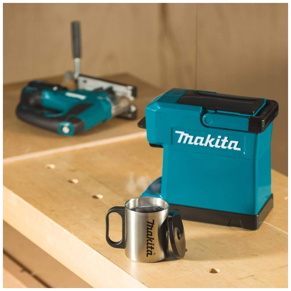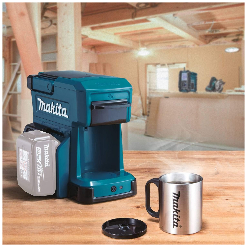 Não são necessários filtros de papel, apenas o seu café moído favorito ou pacote de dose única, água e uma bateria Makita 18V de íon de lítio.