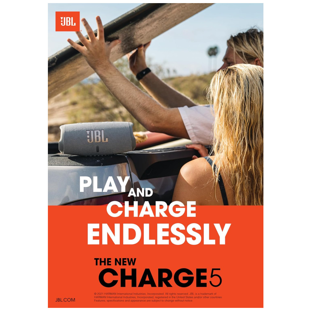 Caixa de Som Bluetooth Portatil 5 a Prova d IP67 com 20H de Reprodução, JBL Charge 5, Azul