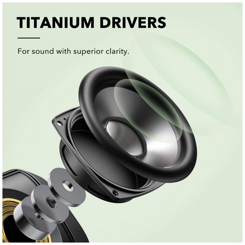 Titânio 100 puro os drivers do Motion Boom têm diafragmas de titânio puro para reproduzir altas frequências de até 40kHz para um som com clareza visivelmente maior.