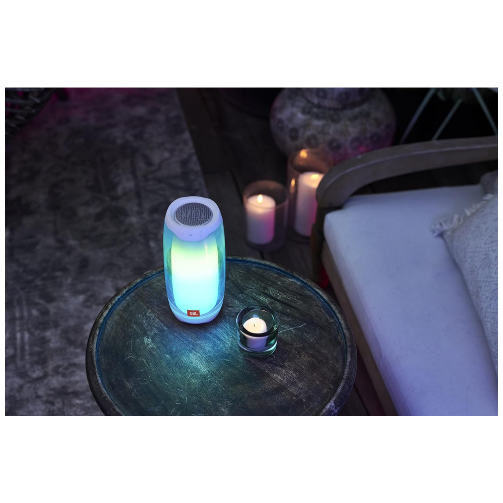 Caixa de Som Bluetooth Portatil Pulse 4 a Prova d IPX7 e Luzes LED, Branca, JBL PULSE4WHTAM, Branco: LUZES DE LED DE 360 GRAUS DESLUMBRANTES O Pulse 4 brilha durante a noite com um incrível show de luzes de LED de 360 graus de alta resolução.